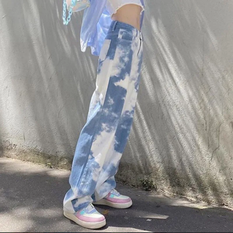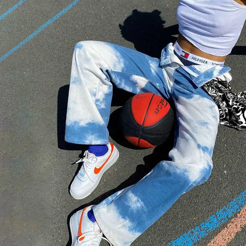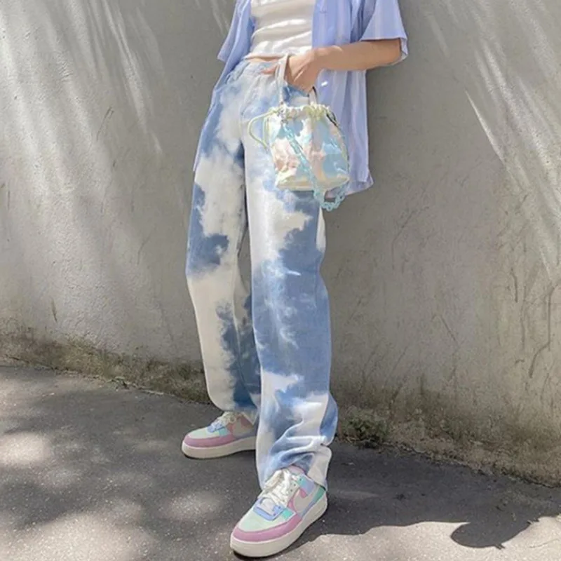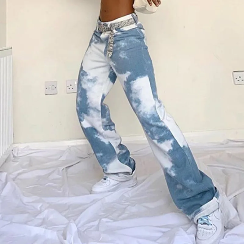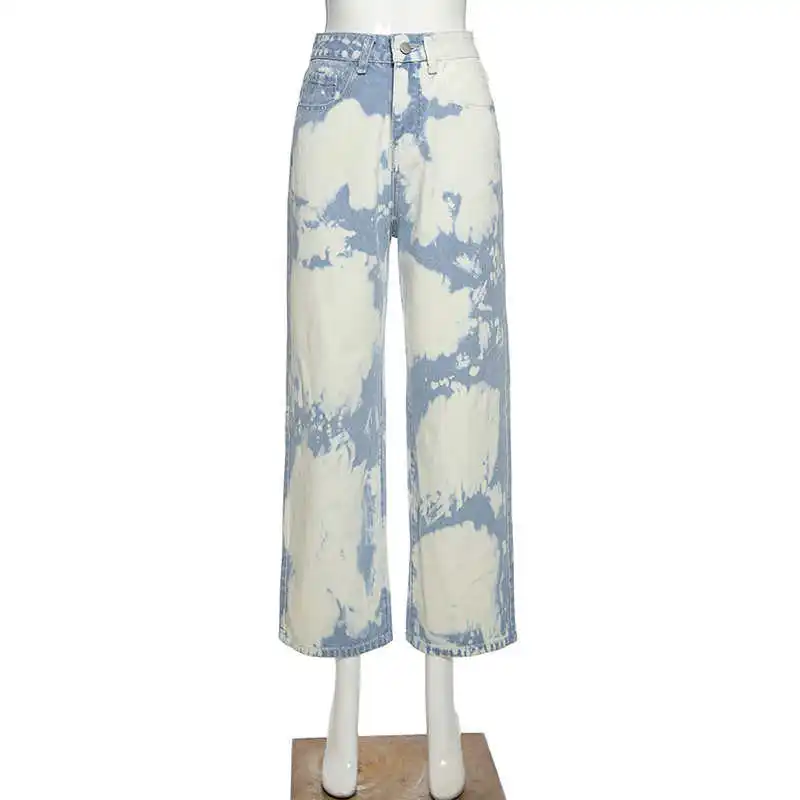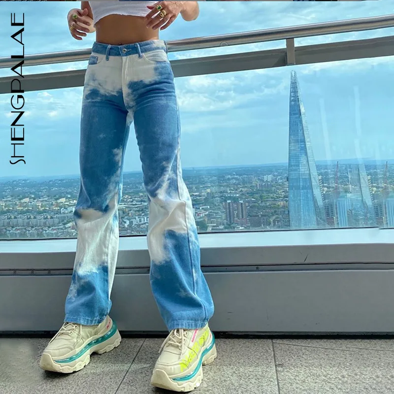 SHENGPALAE 2021 осенние женские уличные джинсы модные с высокой талией тонкие контрастные цвета галстук краситель повседневные ковбойские брюки трендовые 5A128
