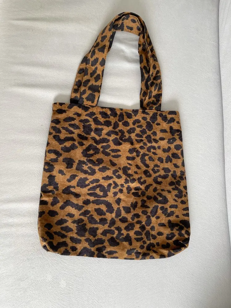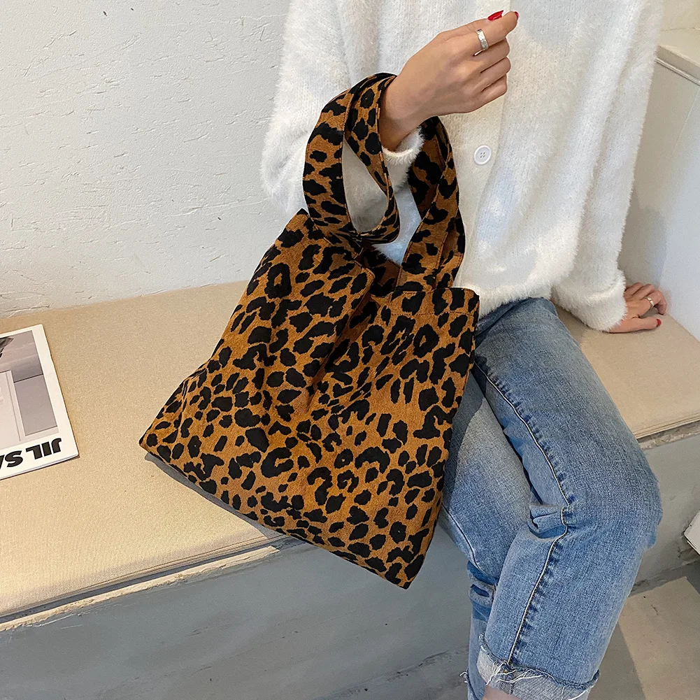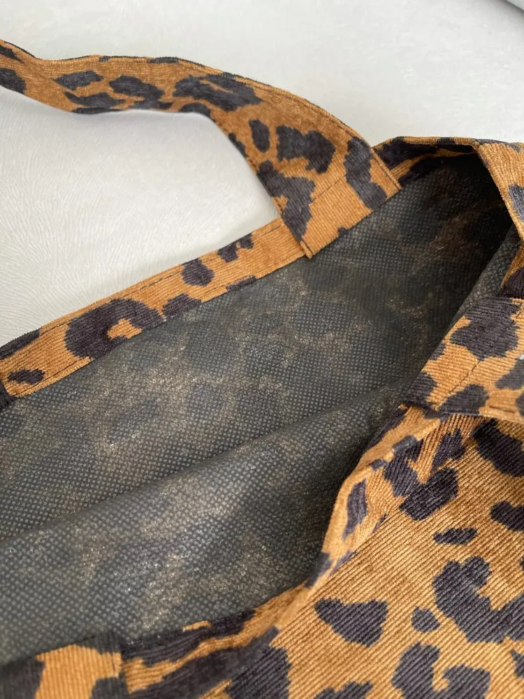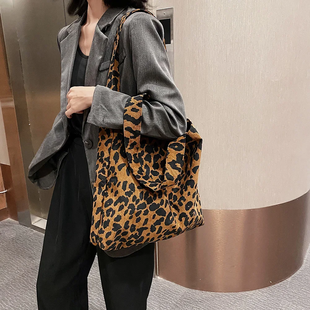 Женская сумка-тоут из рубчатого вельвета, с леопардовым принтом