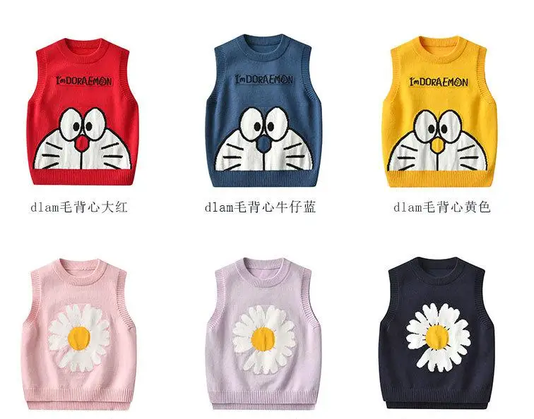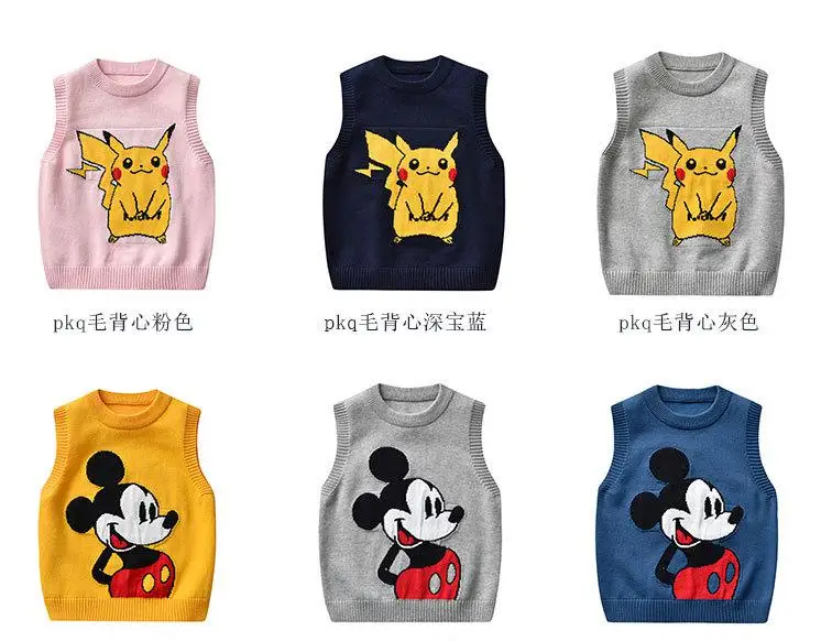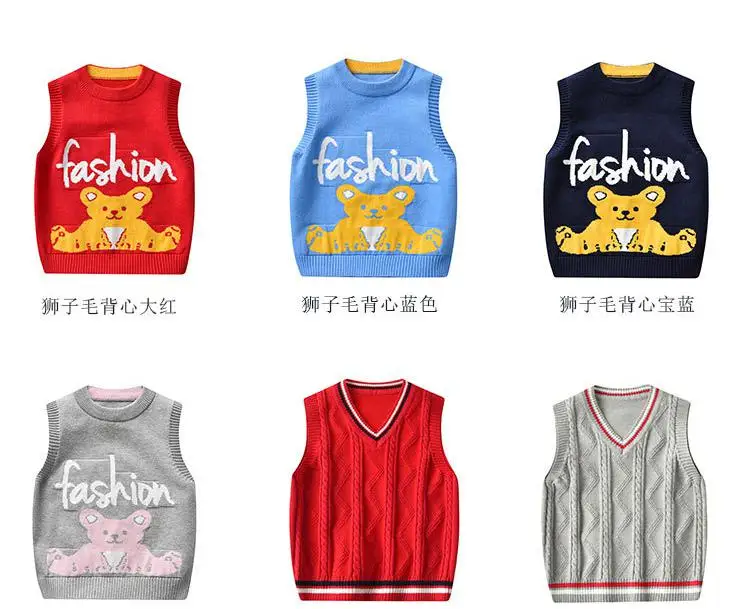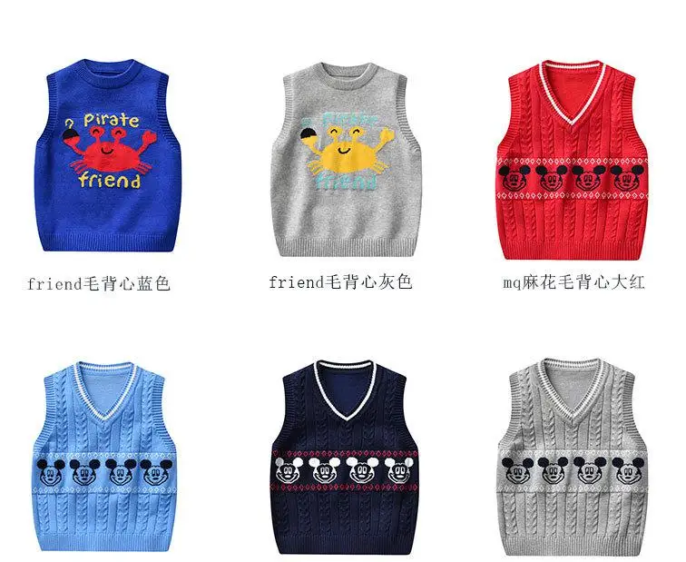 Осенне-зимний детский свитер без рукавов свитер для новорожденных мультяшный вязаный жилет для малышей для мальчиков и девочек школьная форма
