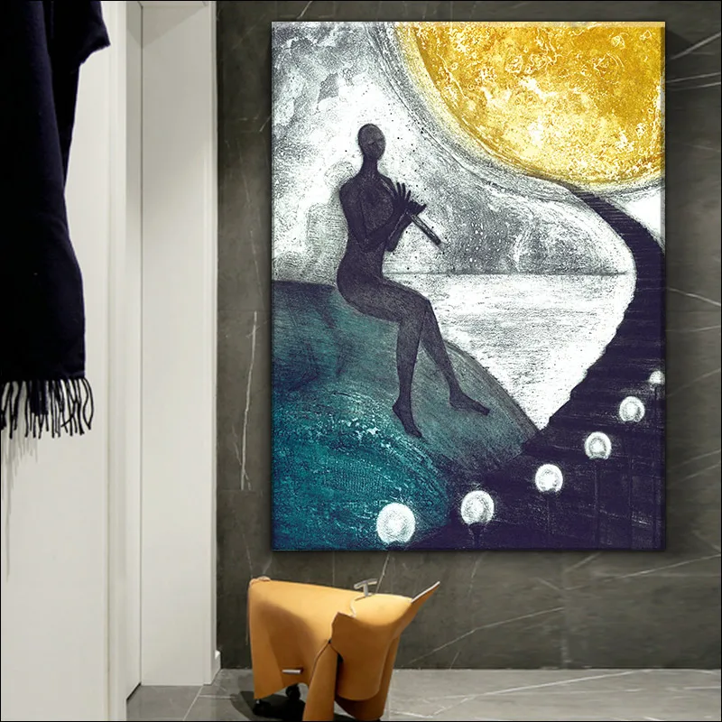 Картина без рамки, скандинавский Простой Холст и рамка, Золотая пос...