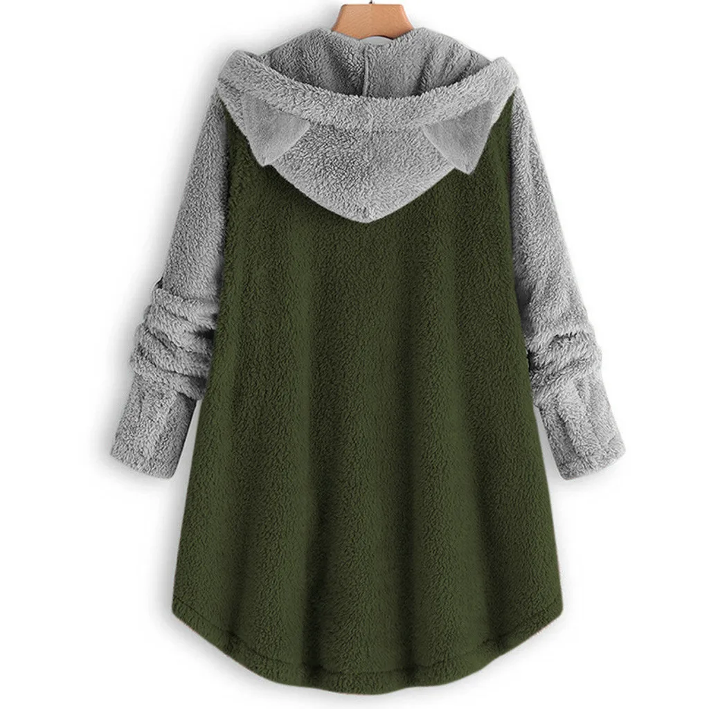 Женское пальто на пуговицах, однотонный пуловер с капюшоном, свободный свитер, блузка размера плюсЖенское пальто на пуговицах, Лоскутные Топы, пуловер с капюшоном, свободный свитер, блузка размера плюс