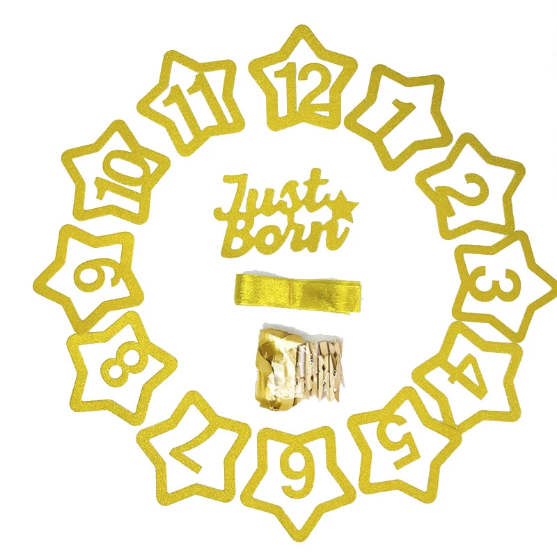 Плакат с золотыми мерцающими звездами для детей от 1 до 12 месяцев, украшение для первого дня рождения, стул, флажки для детей от 1 года