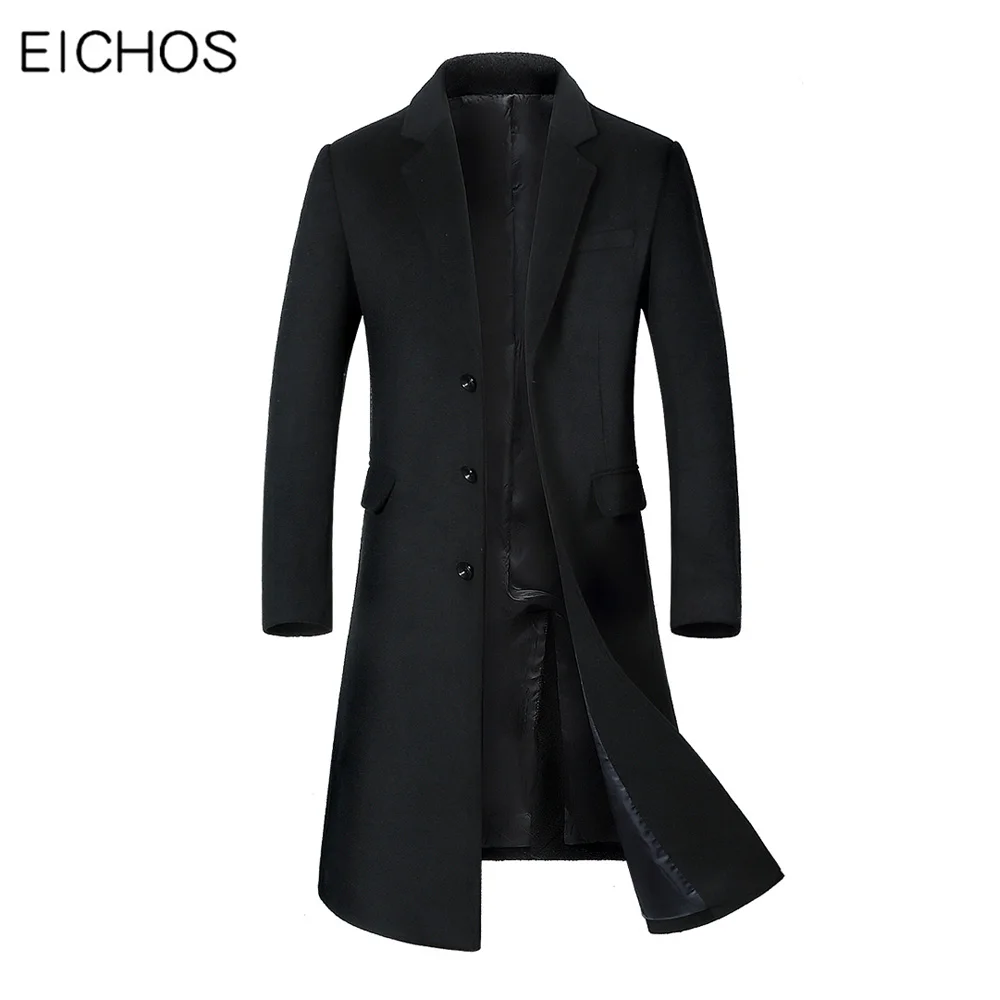 Мужское плотное шерстяное пальто ниже колена, мужское деловое пальт...
