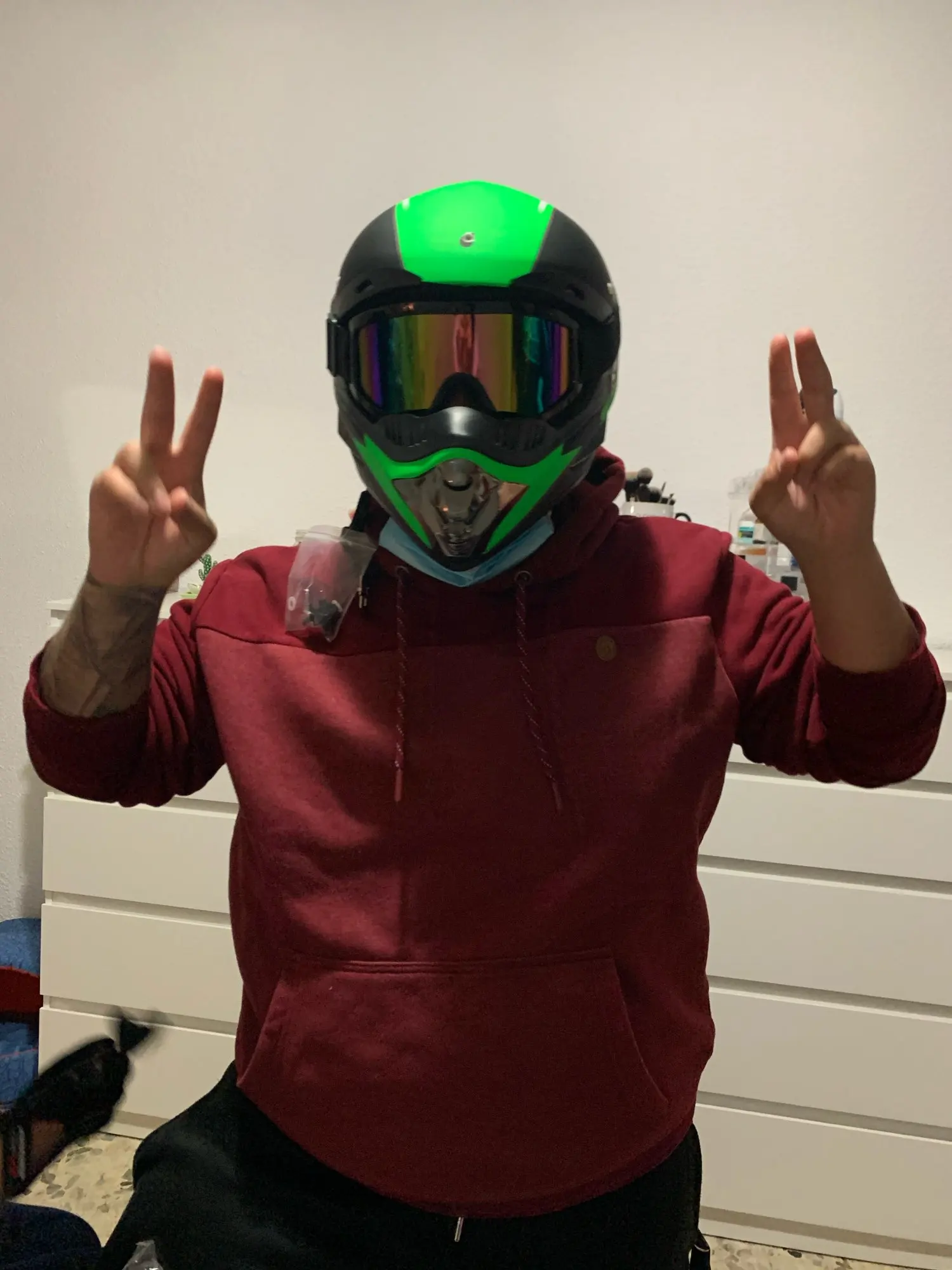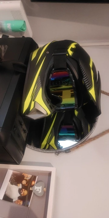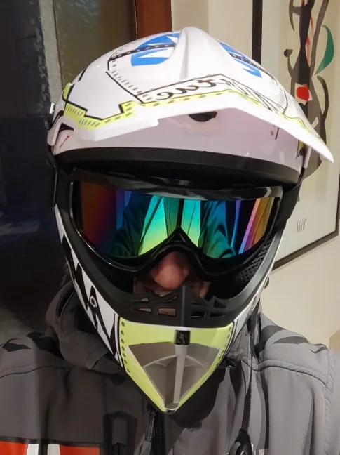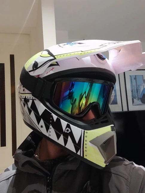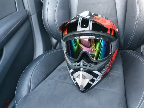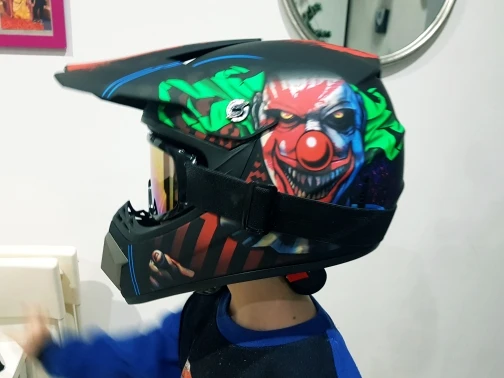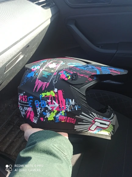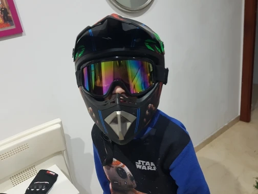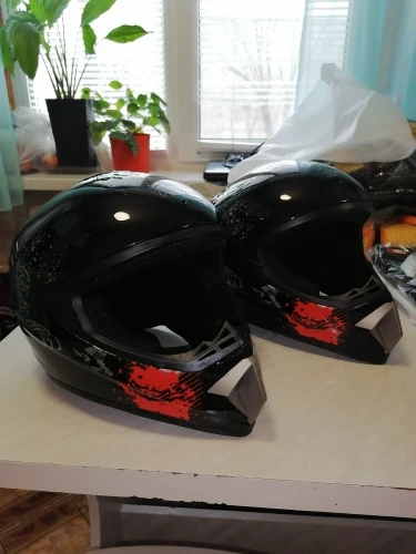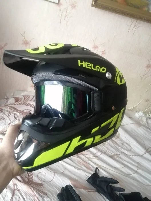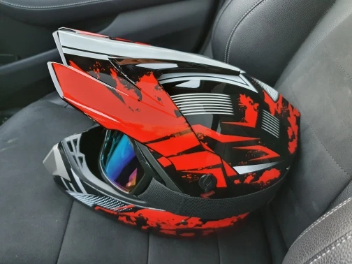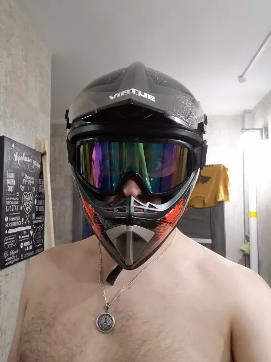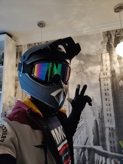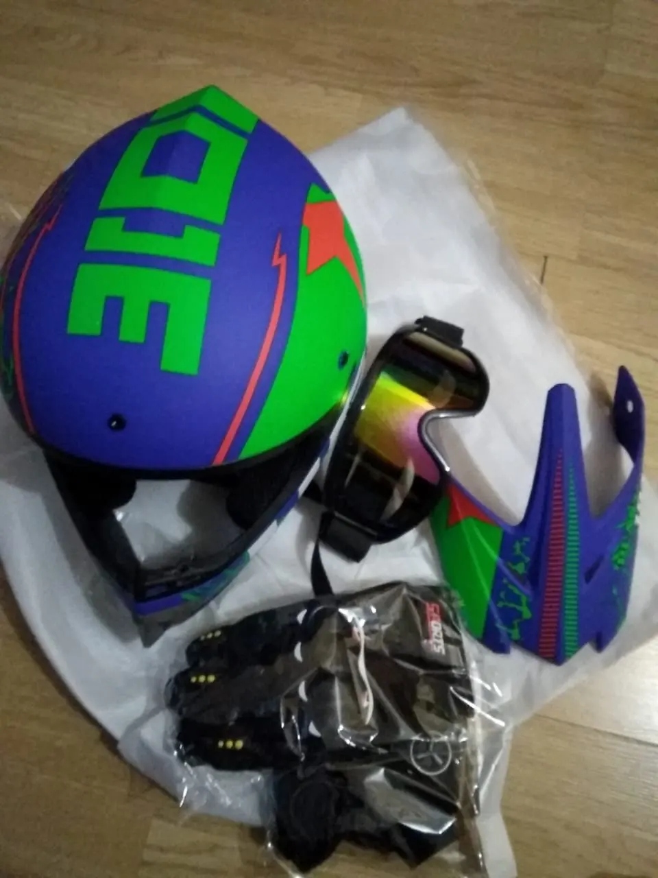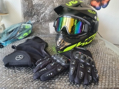 Шлем очень легкий, Краска матовая и очень хорошо закончена. Очки как солнце, хорошо. Перчатки пришли очень хорошо тоже. Доволен покупкой. Я взрослый человек, я взял размер L. У меня большие волосы, но с м я не знаю, подходит ли они мне, поэтому я не рискнул