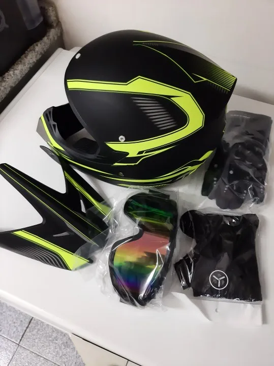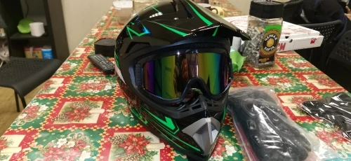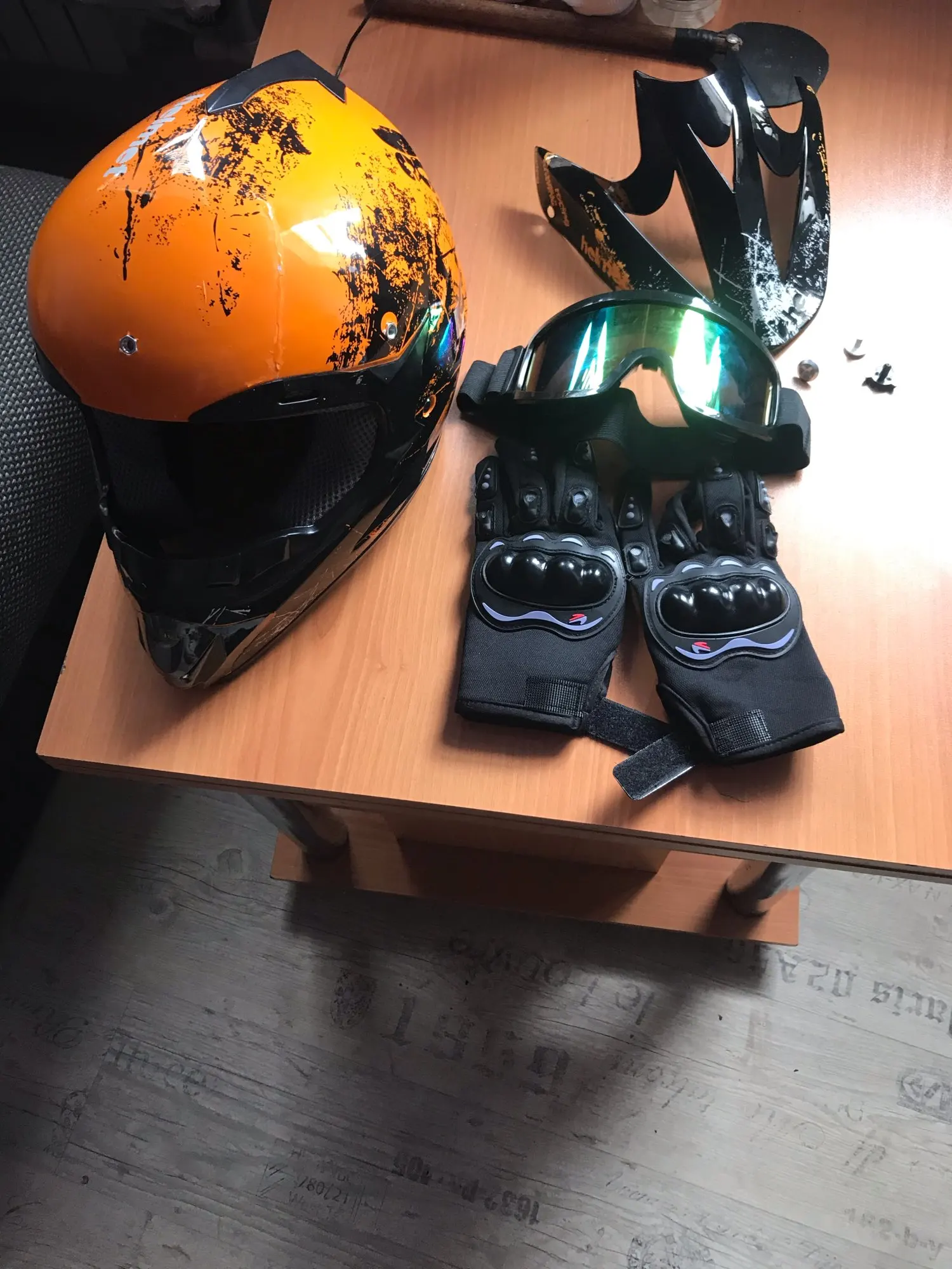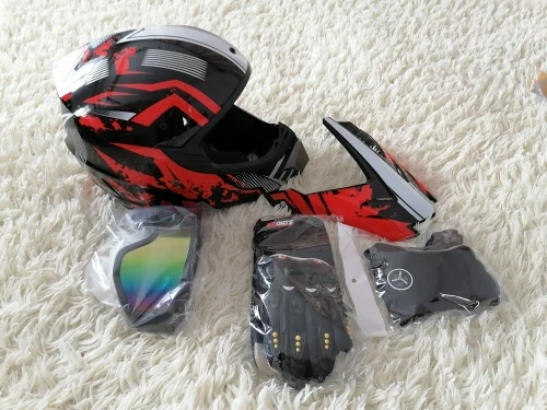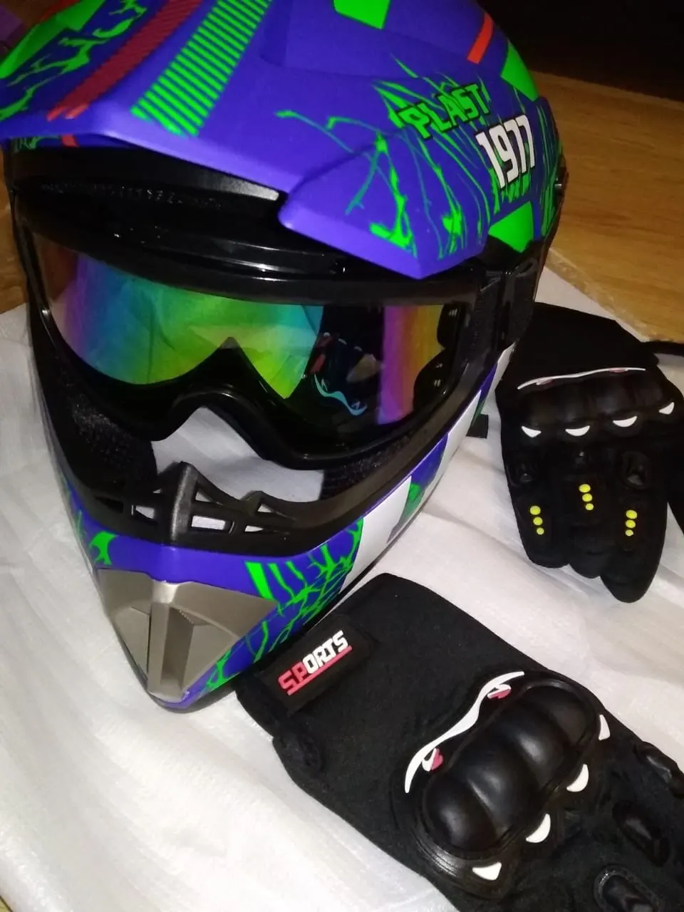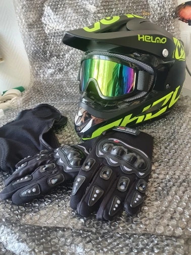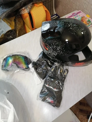 Шолом цілий, якість непогана за свою ціну. Рукавиці порадували , окуляри також свою роботу зможуть виконати , а ось кусок тканини підійде щоб витерти мото або окуляри , хоча якщо прикласти трохи руку , то можна її використати по призначенню . Але в цілому товаром задоволений.