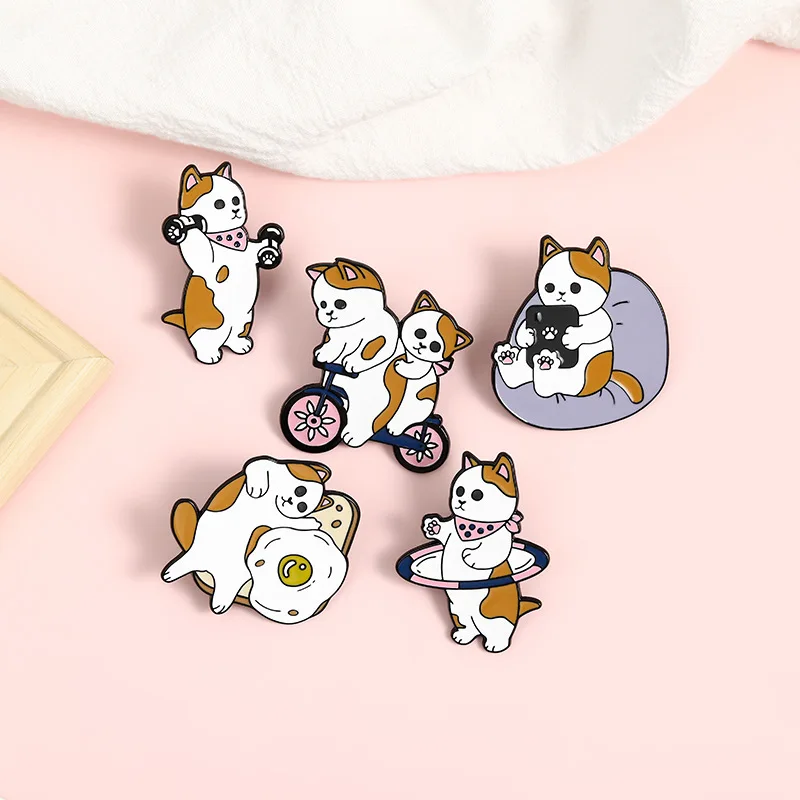 Мультяшный Кот яйцо велосипед гантели хула кольцо Броши забавные ко...