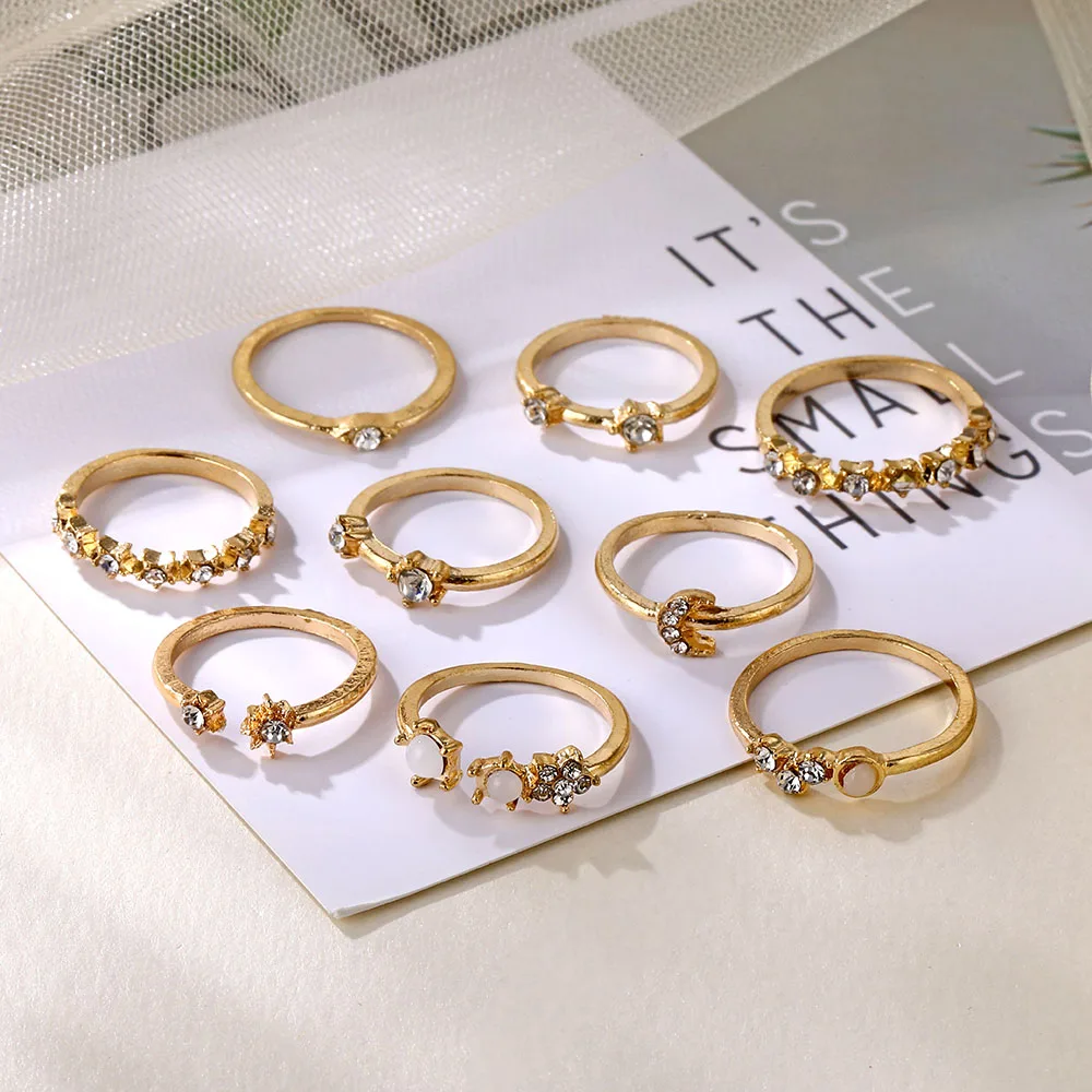 Набор Колец IPARAM из сплава с золотым кристаллом, 9 шт.компл.