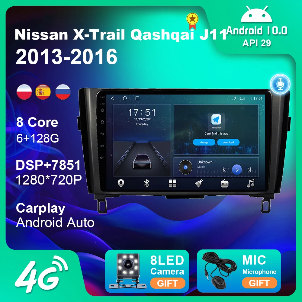 Умный автомобильный Радио авто 10 дюймов для Nissan X-Trail Qashqai J11 2013-2016 Android 9,0 Мультимедиа стерео видео плеер GPS навигация