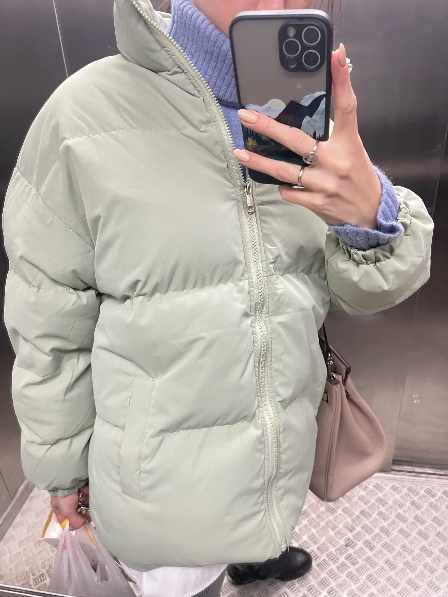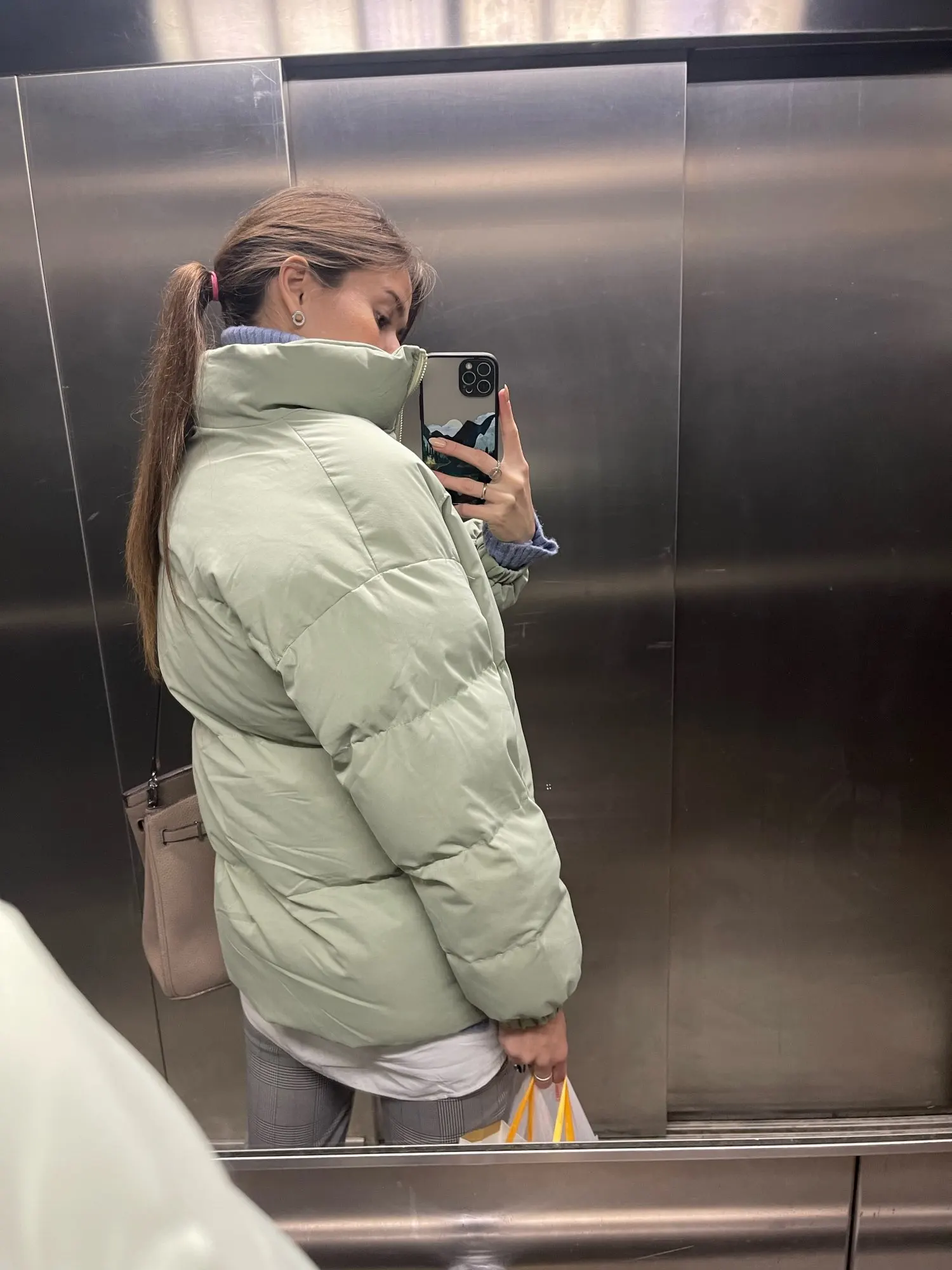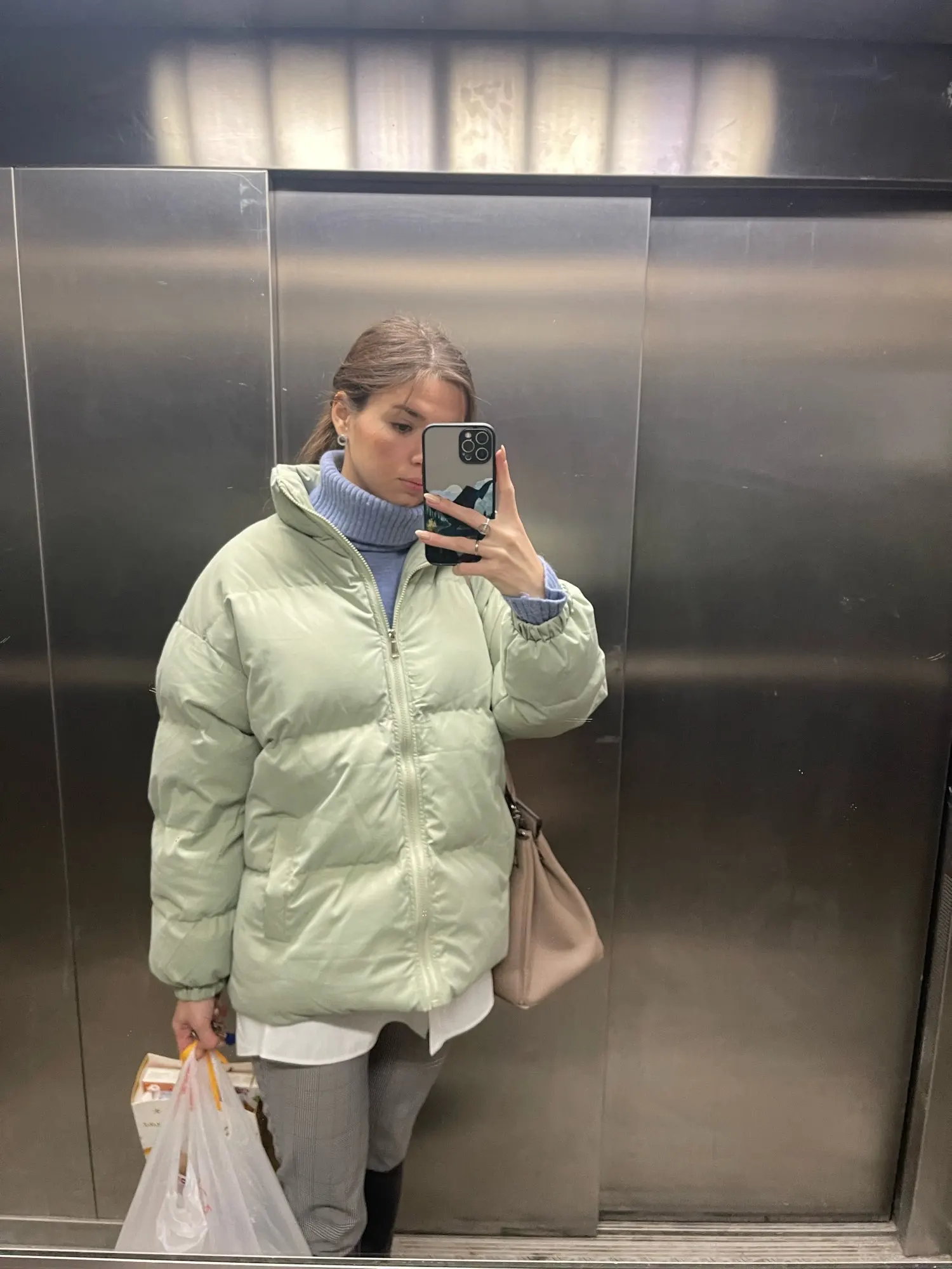Я её обожаю! Качественная, не блестит, хорошо набита. Я подписана на многих блогеров али, но на эту куртку наткнулась случайно, и не пожалела, что заказала. Мой рост 158, вес 40, размер М сидит прям оверсайз и рукава длинноваты. Думаю, на мои параметры идеально был бы S, которого, к сожалению, не существует((( а так прям очень кайфовая, хожу в ней сейчас в -20, снизу свитер и не холодно. Поэтому у кого зима не такая суровая, как на севере, можете вообще всю зиму в ней проходить)