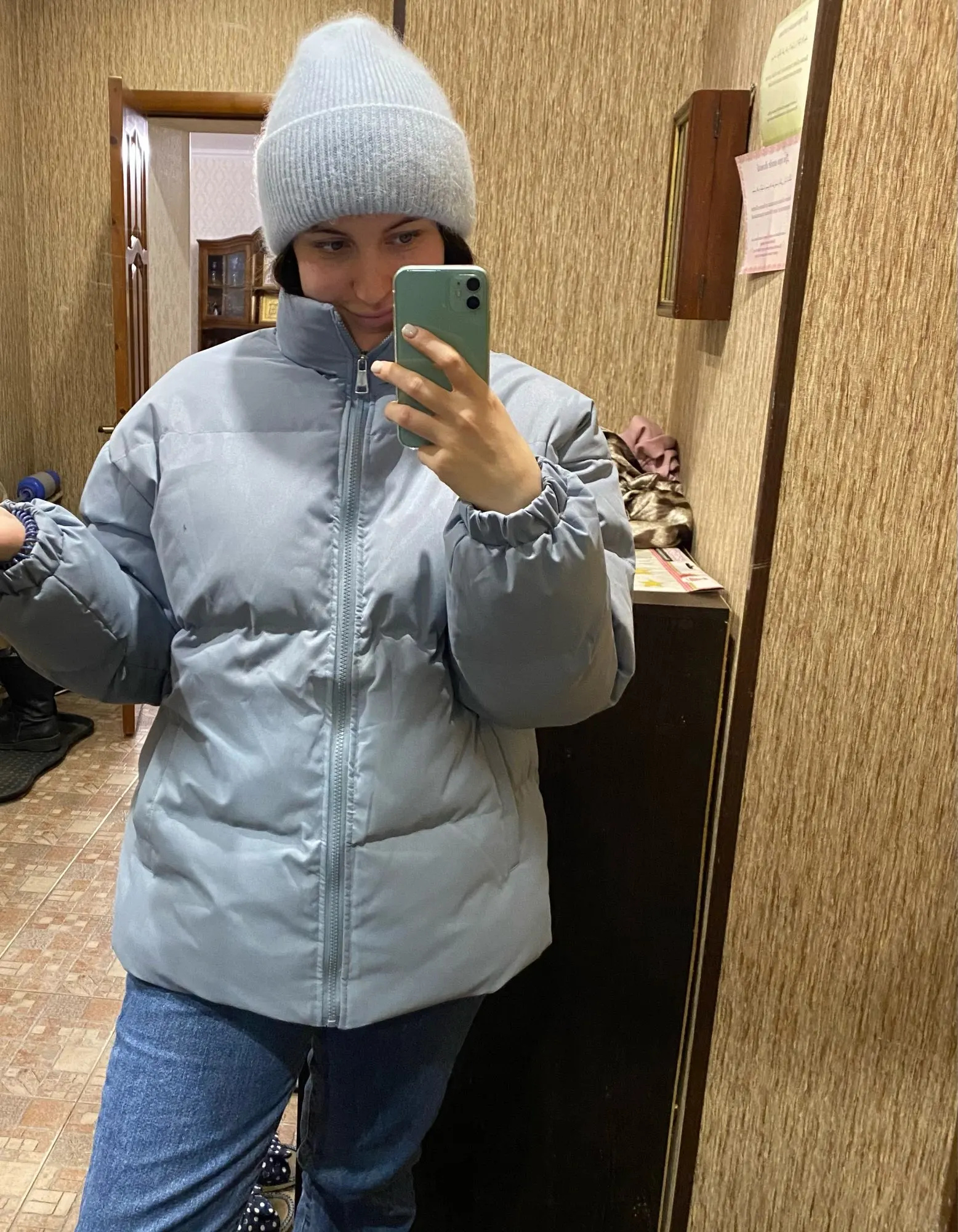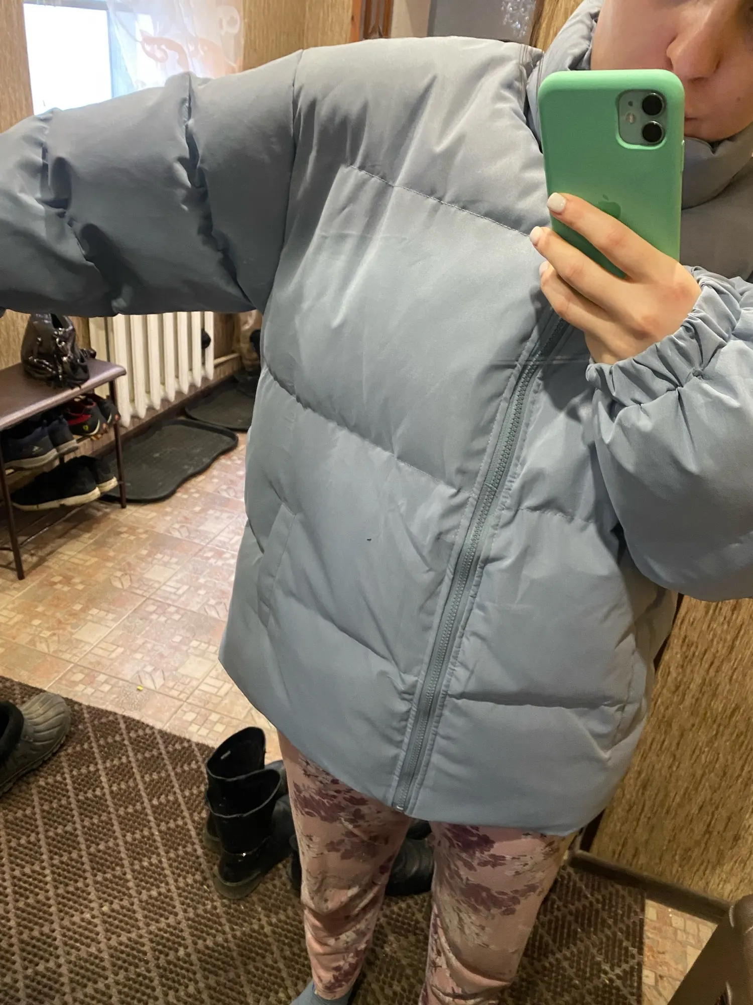 Куртка обалденная! Понравилось в ней всё! Она до -15 с тёплым свитером так точно. Модель оверсайз, цвет красивейший небесно-голубой, матовая непромокаемая ткань, НО! Она мне велика:(( на свой 44-46 заказала ХЛ, почитав и оперевшись на отзывы( кто размера 46-48, даже и 50, и кто хочет ее быстрее, могу переслать. Город Самара если можно сразу же забрать. Покупала за 1800 отдам за 1500. Надела один раз, когда и поняла что она мне велика. Номер для связи 8-996-620-12-20