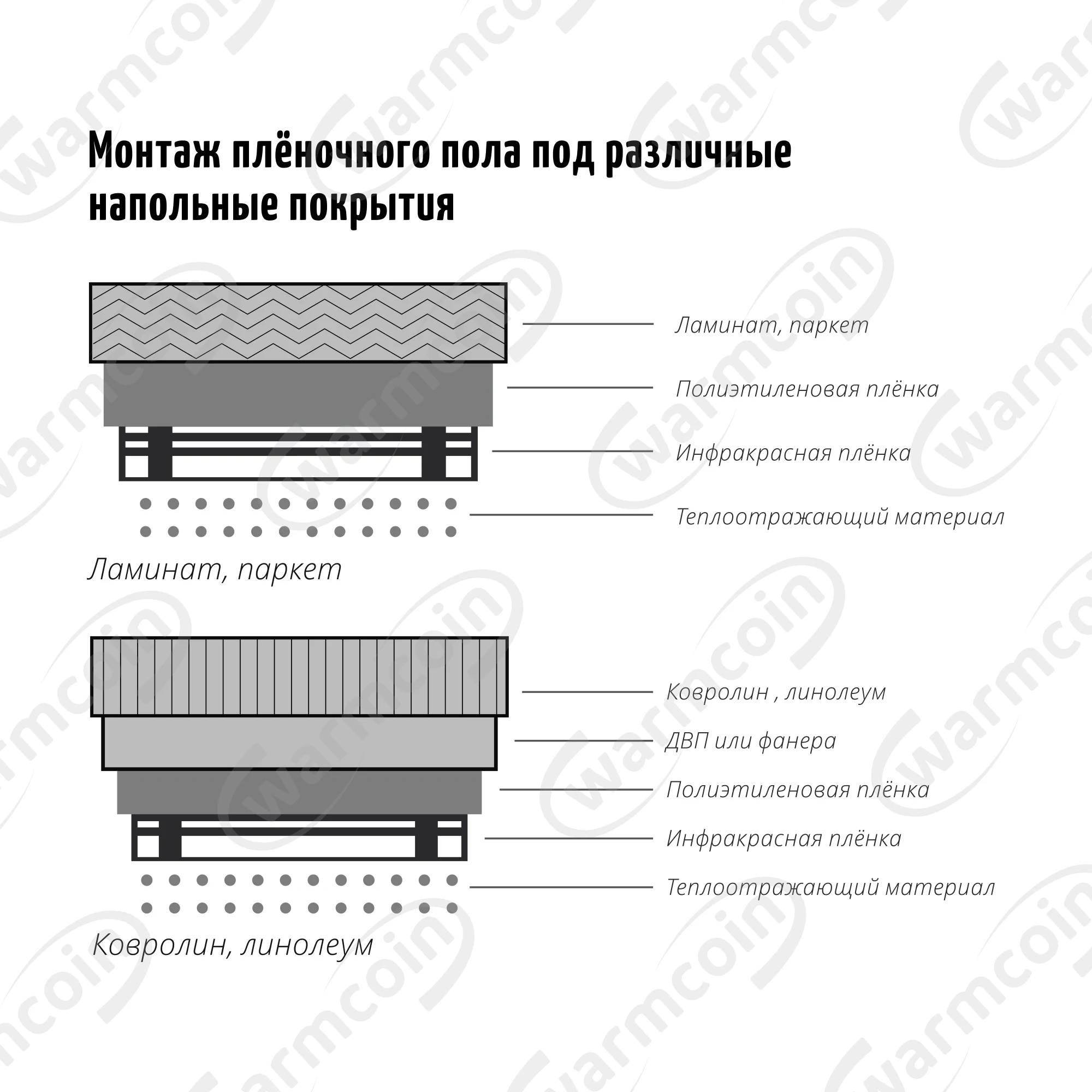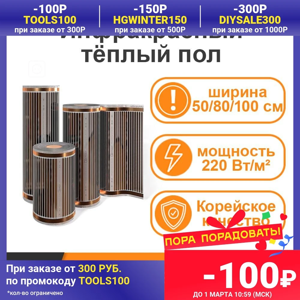 Инфракрасный плёночный тёплый пол ширина 5080100 см, под ламинат, ковролин, линолеум, Южная Корея, термостат