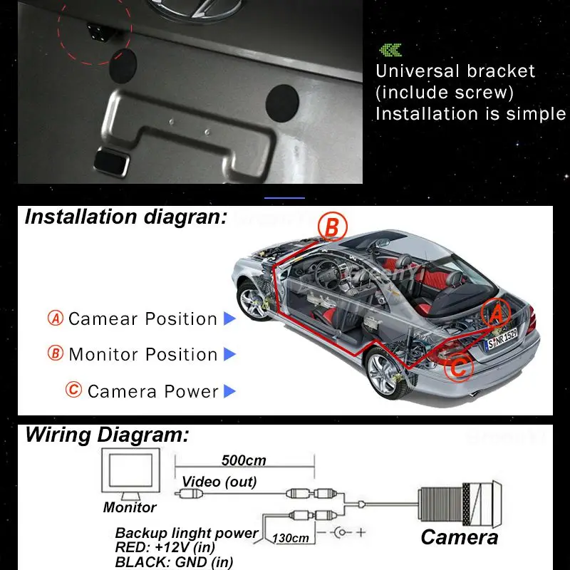 Автомобильная камера заднего вида ligent Dynamic траектория треков камера заднего вида HD 170 градусов камера заднего вида