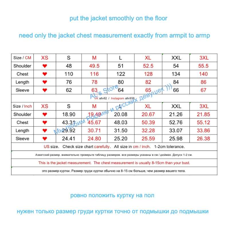 Пожалуйста, измерьте вашу куртку, как показано ниже: