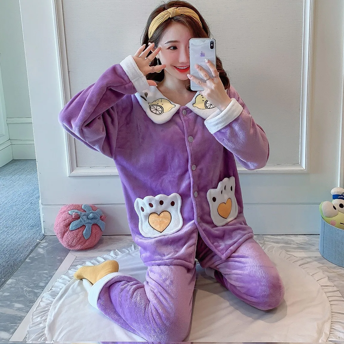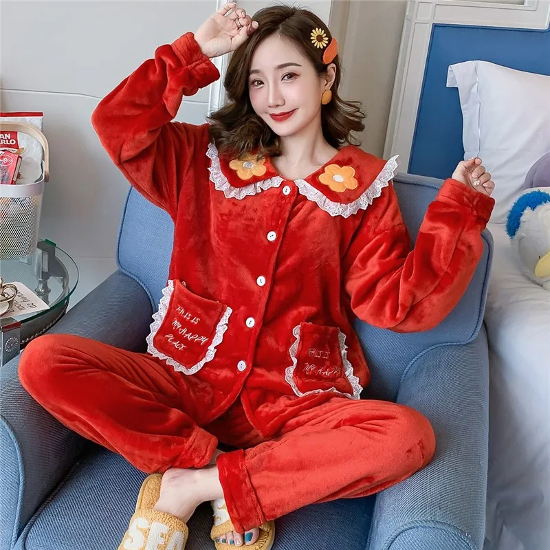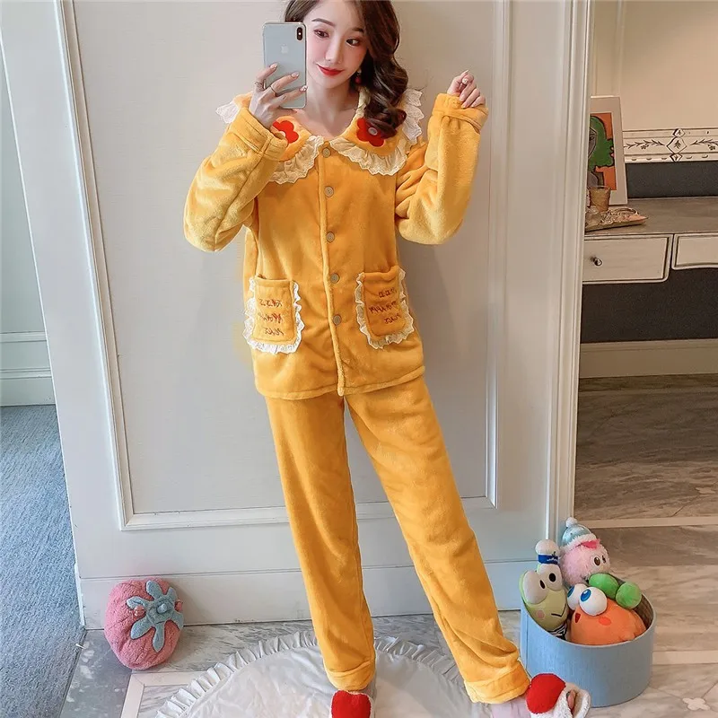 Женский Пижамный костюм из 2 предметов, фланелевая рубашка и штаны, одежда для сна, повседневная одежда для сна, милое интимное белье, мягкая Домашняя одежда, зимняя новая Пижама