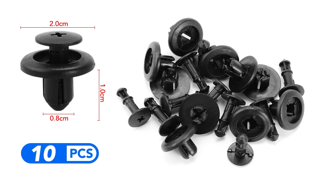 Эти заклепки для бампера изготовлены из пластика, не ржавеют и не гниют. Можно использовать в течение длительного времени.