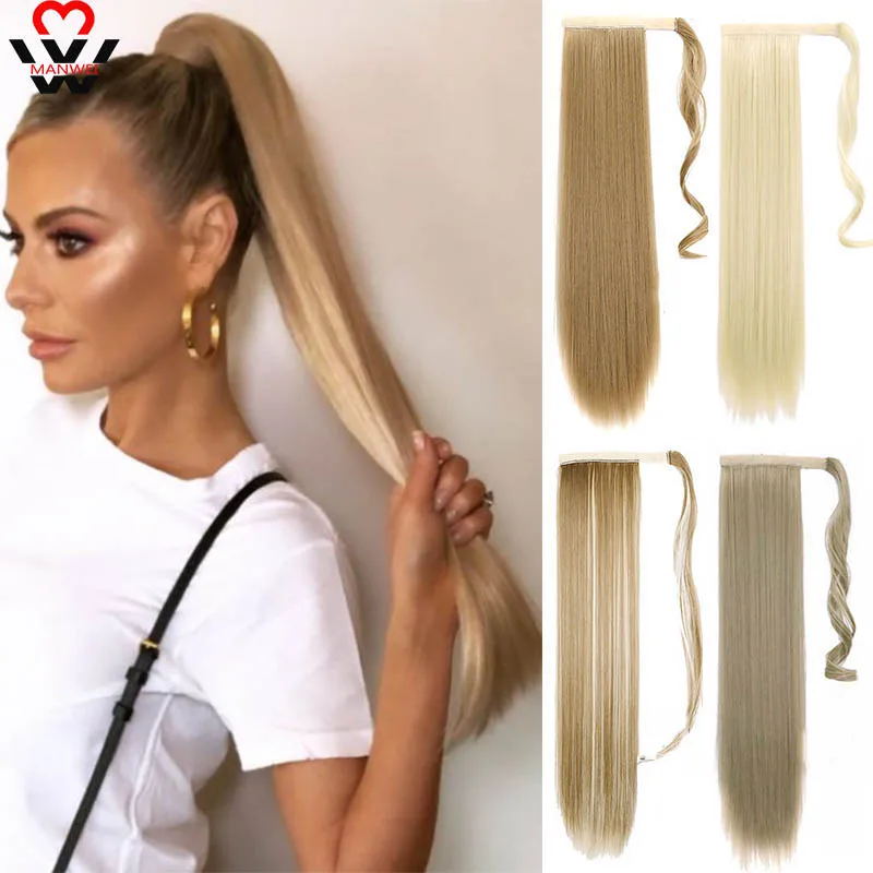 Накладной хвост MANWEI на заколке, длинные прямые волосы в виде конского хвоста, 24 дюйма, синтетический шиньон