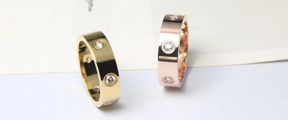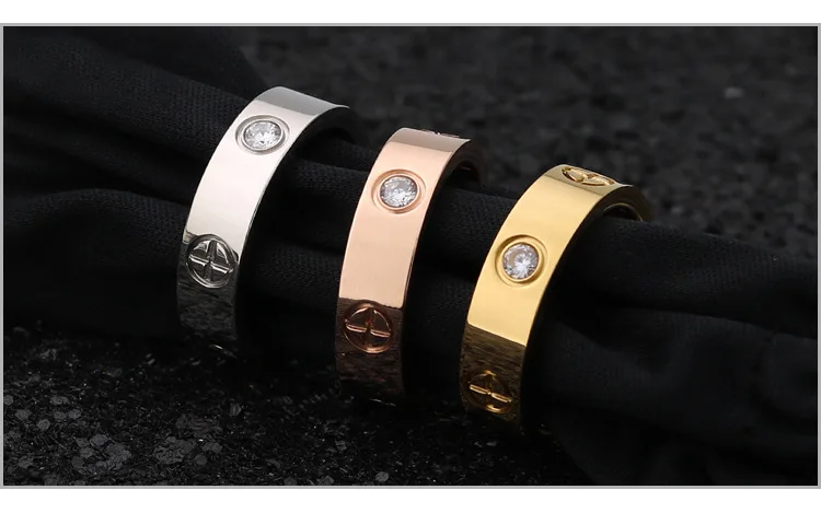 Модное кольцо для влюбленных из нержавеющей стали цвета розового золота для женщин и мужчин, парные кольца с фианитами и кристаллами, роскошная брендовая бижутерия, свадебный подарок