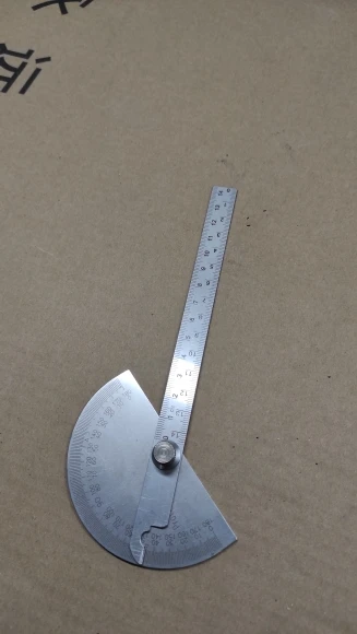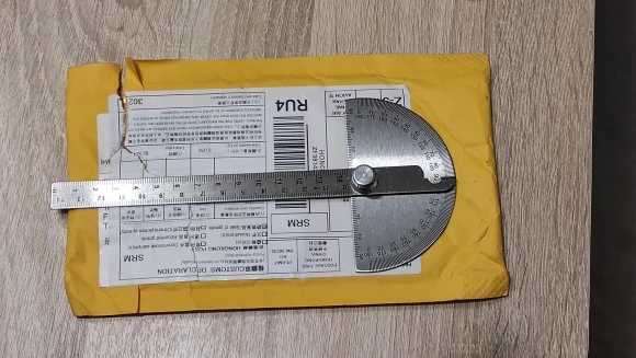 дошел транспортир угломер в целости и сохранности-плотная сталь-цифры не надписью а насечены-рекомендую к покупке-спасибо