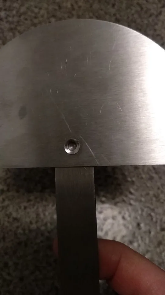 Фото не совсем соответствуют товару: нет линейки на горизонтали транспортира, насечки градусов не доходят до края на 1-1,5 мм. Металл тяжёлый, основательный. Все надписи - это гравировка, так что ничего не должно стираться. Винт позволяет зафиксировать угол.