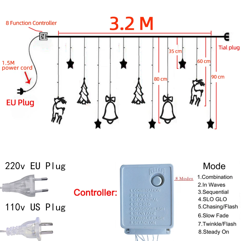 Светодиодный колокольчики в виде оленя, Рождественская гирлянда, гирлянда, Сказочная занавеска, подвессветильник льники на новый год, Рождество, подарок, украшения