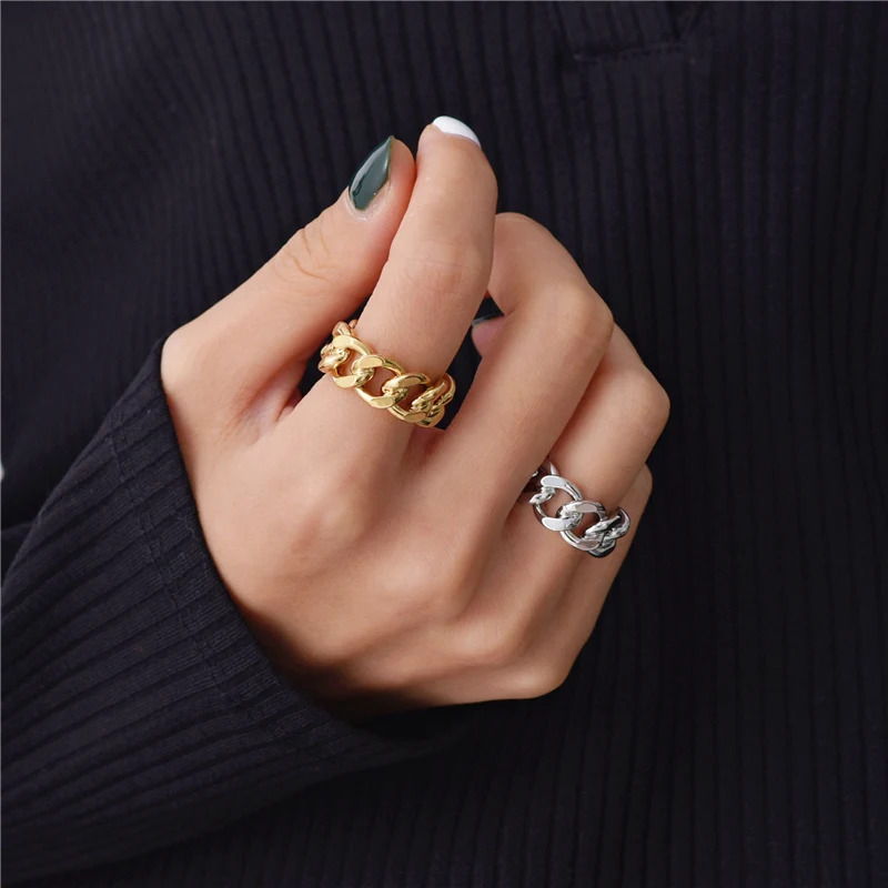 Золотистые и серебристые кольца на крупной цепочке, звеньевые витые геометрические кольца для женщин, винтажные аксессуары открытые Регулируемые кольца 2020, модный аксессуар