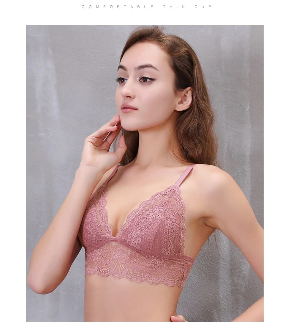 Женский кружевной беспроводной бюстгальтер, сексуальный розовый бюстгальтер без косточек, французский топ, нижнее белье с подкладкой, пуш-ап, регулируемый ремень, бесшовное белье без косточек
