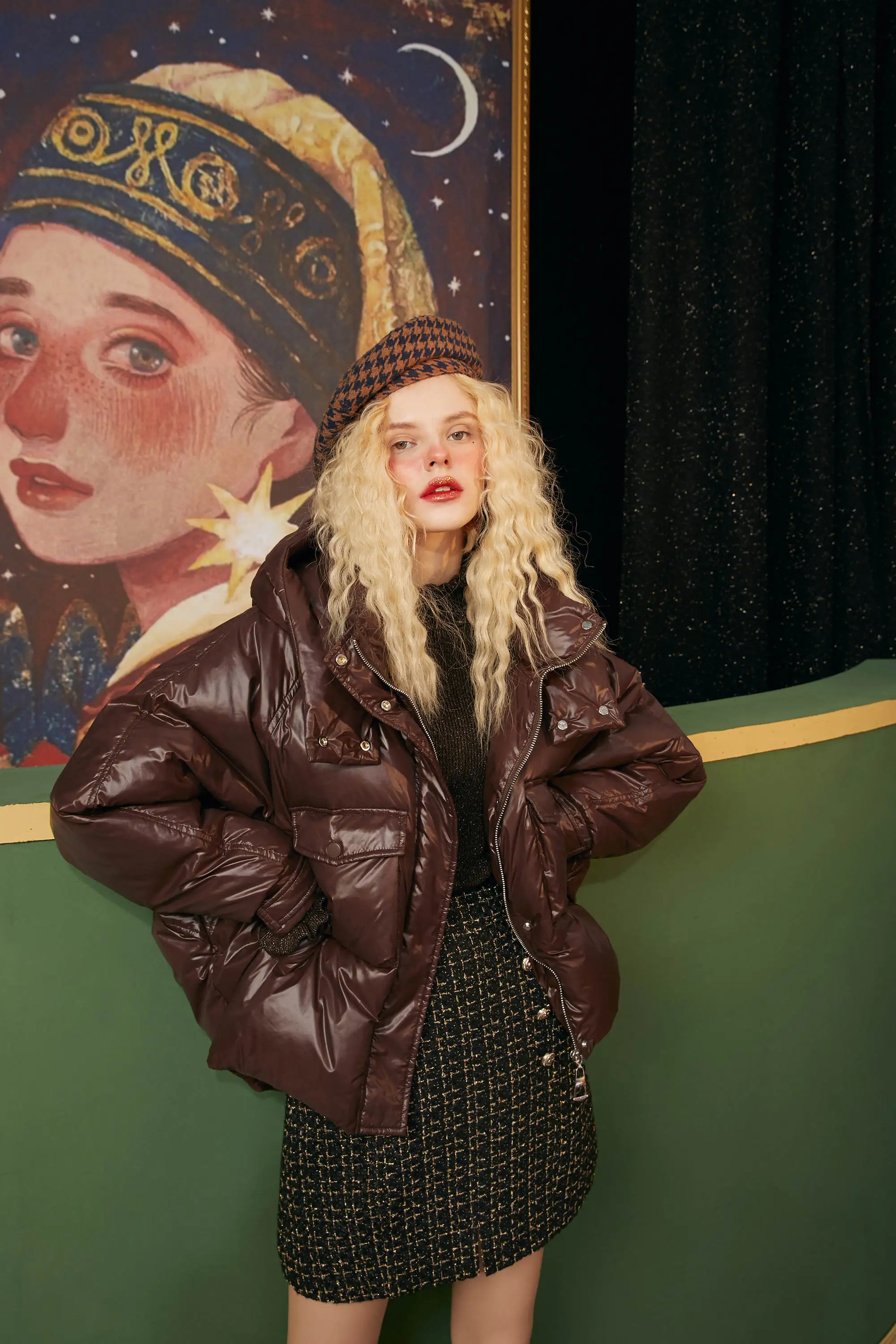 Женский однотонный пуховик на 90% белом утином пуху ELFSACK, однотонная теплая верхняя одежда в Корейском стиле с карманами эльфа, зима 2020