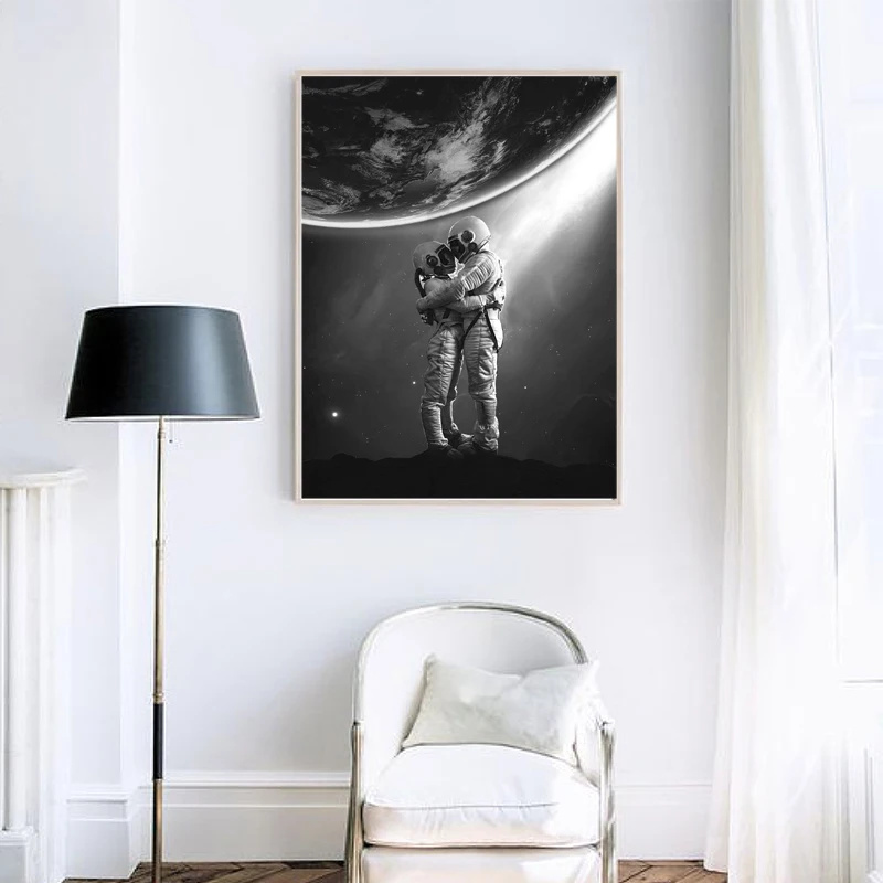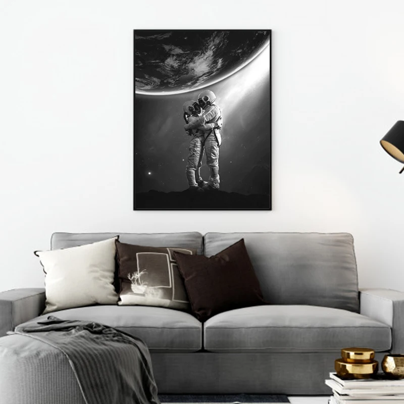 Космическая любовь плакат Cosmonaut пара космическая фотография тема печать холст живопись черный белый настенные фотографии домашний Настенный декор