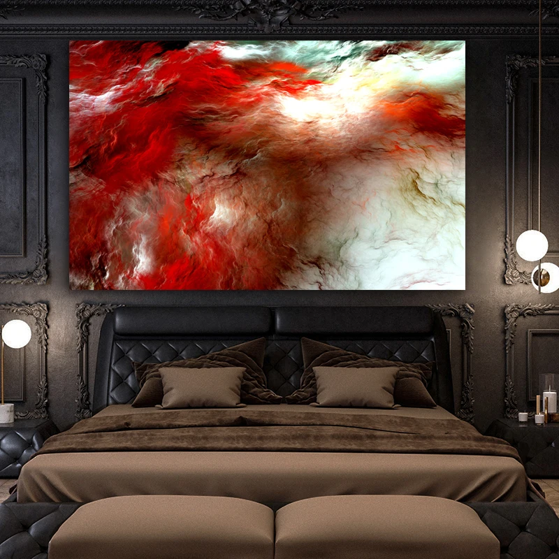 Wangart большой размер красное облако небо картина маслом Настенная картина для гостиной Холст Современное искусство плакат и печать