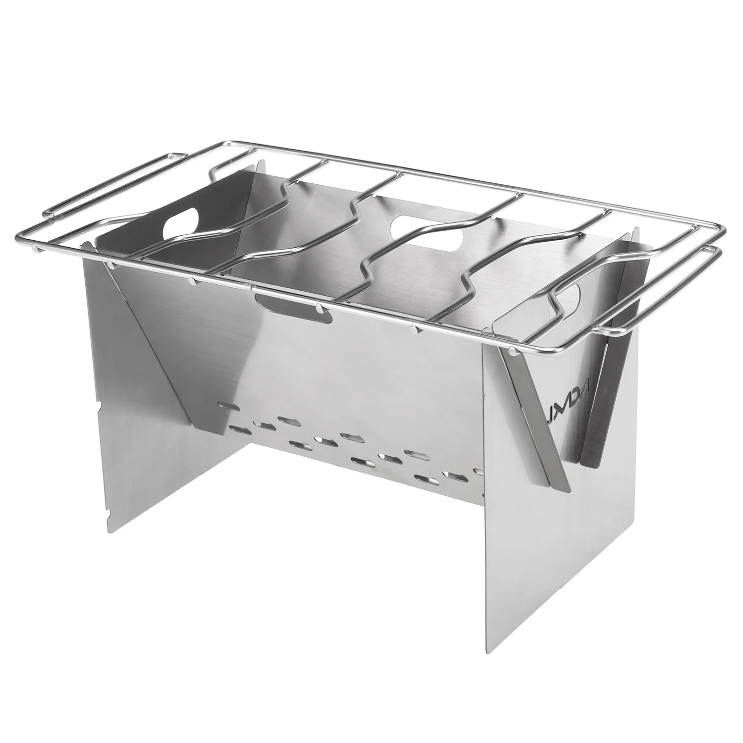 Кемпинговая дровяная плита, шампуры для барбекю, складная походная плита для приготовления пищи с тарелкой для гриля и шампурами для барбекю