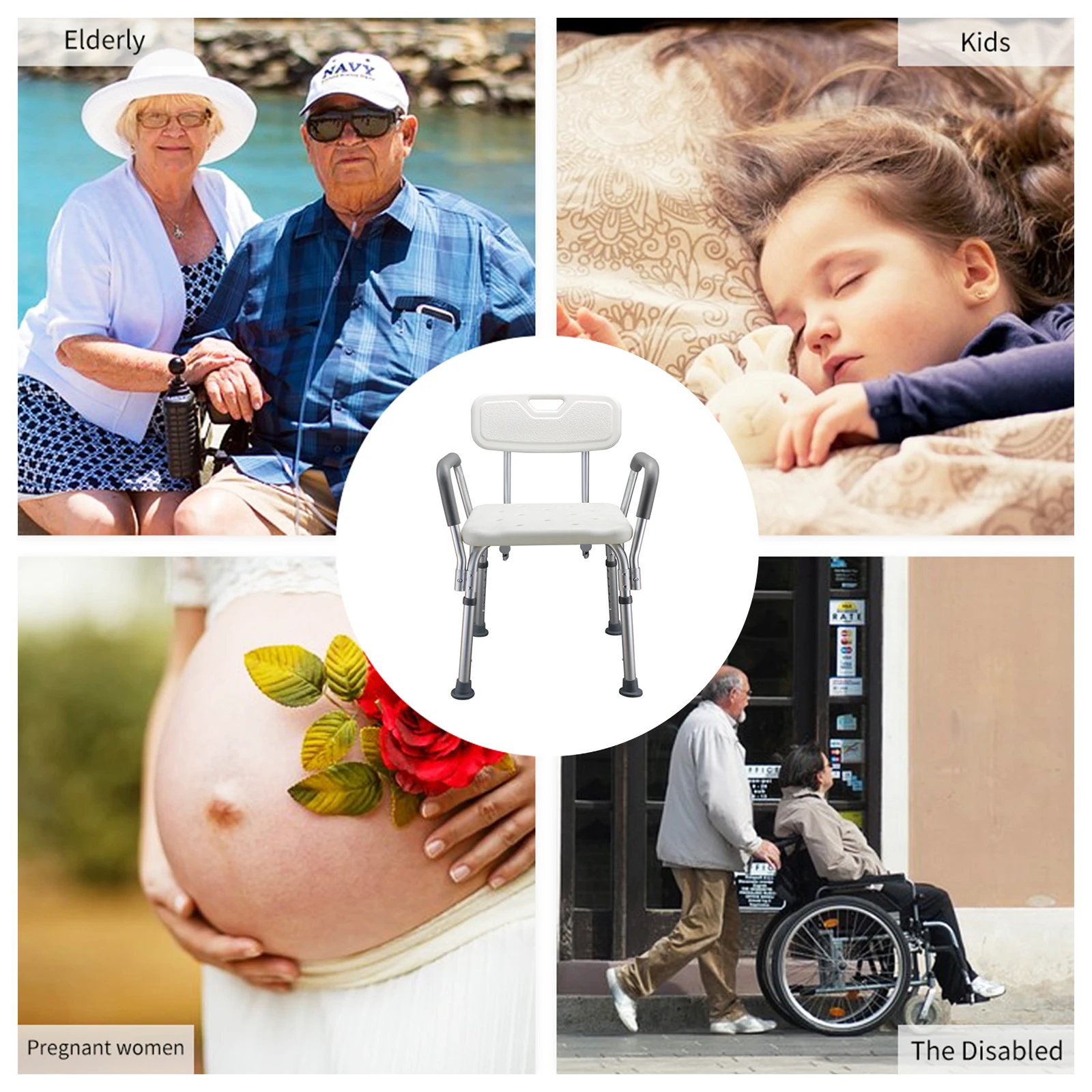 [Грузоподъемность 136 фунтов] сиденье для душа для инвалидов с регулируемой высотой изготовлено из сверхпрочного материала и может выдерживать до кг/фунта.