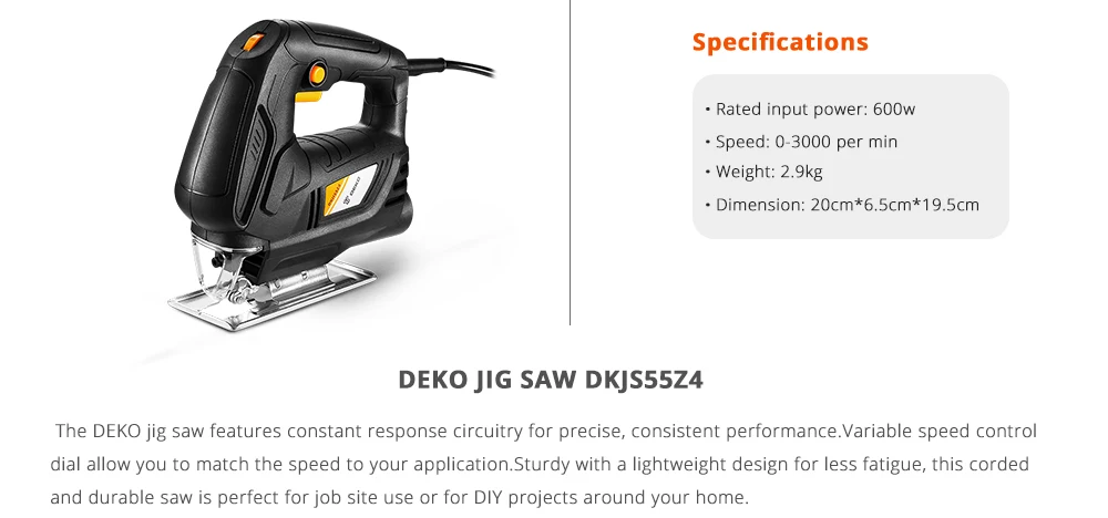 Электропила DEKO, электропила с переменной скоростью и 1 лезвием