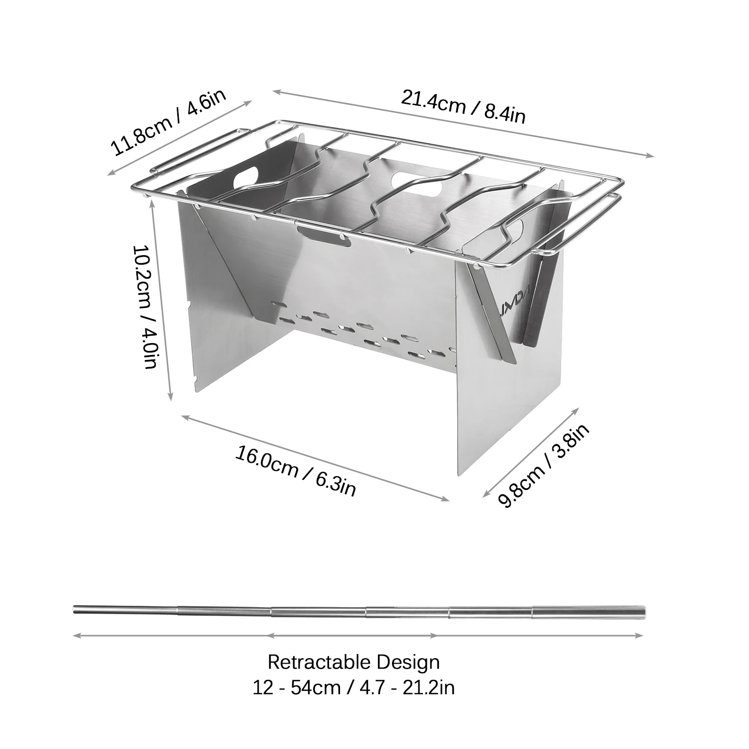 Печь для барбекюСкладная альпинистская плита из нержавеющей стали с плитой для гриля и складным ниже, отличный инструмент для приготовления пищи для кемпинга на открытом воздухе, пеших прогулок, альпинизма, барбекю, выживания и других видов деятельности.Особенности:Прочные пластины из нержавеющей стали пересекают друг друга, чтобы создать стабильную конструкцию.Нижние вентиляционные отверстия для хорошей вентиляции и эффективности сжигания.Плита для гриля служит платформой для приготовления кастрюли или барбекю.Складывающийся Беллоу (4,7 "-21,2") Защищает лицо от огня, добавляя кислород.Используйте в полной мере неограниченное количество топлива, собранного из вашего похода, таких как ветки, ветки, бумага и листья.Легко собрать и снять, отлично подходит для кемпинга, пеших прогулок, альпинизма, барбекю и т. Д.Технические характеристики:Материал: нержавеющая стальРазмер сборки: 9,8*16*10,2 см/3,8*6,3 * 4.0inРазмер гриля: 21,4*11,8 см/8,4*4,6 дюймаДлина ниже: 12 - 54 см/4,7-21,2 дюймаОбщий вес: прибл. 248 г/8,7 унцийВ комплект входит:1 * напольная плита1 * тарелка для гриля1 * нижеТитановые шампуры для длительного использования, идеальные аксессуары для гриля для кемпинга, пеших прогулок, альпинизма и т. Д.Дял шашлыкаОсобенности:5 шт. шампуров в наборе, каждая длина составляет 10 дюймов.Изготовлен из титанового материала, легкий и устойчивый к коррозии.Плоский шампур предотвращает вращение пищи.С проволочным кольцом, чтобы держать шампуры вместе.Идеально подходит для говядины, рыбы, натоптышей, овощей, мяса и т. Д.Отличные аксессуары для барбекю.Технические характеристики:Материал: титанДлина: 25 см/10inВес: 8,5 г/0,3 унций (каждый)В комплект входит:5 * шпажки
