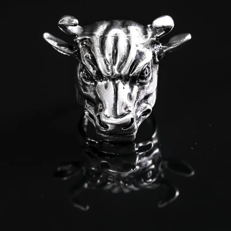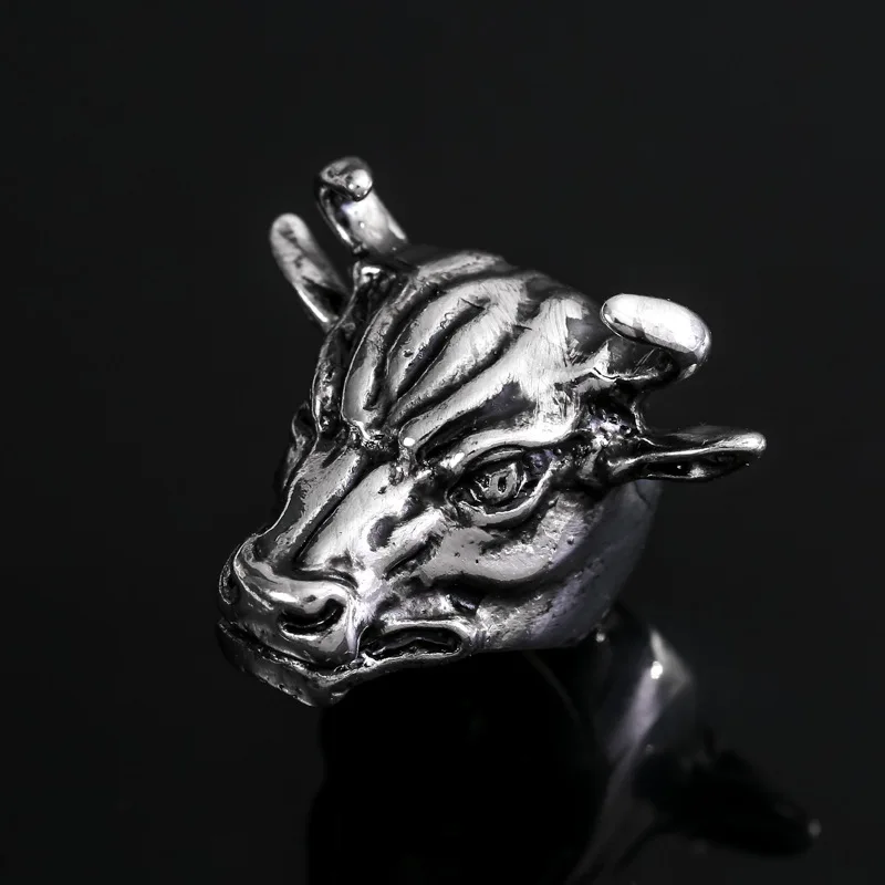 Кольцо мужское золотистоеметаллическое в стиле ретро, ювелирное изделие в стиле панк, с изображением животных, бычьей головы, пистолет черного цвета