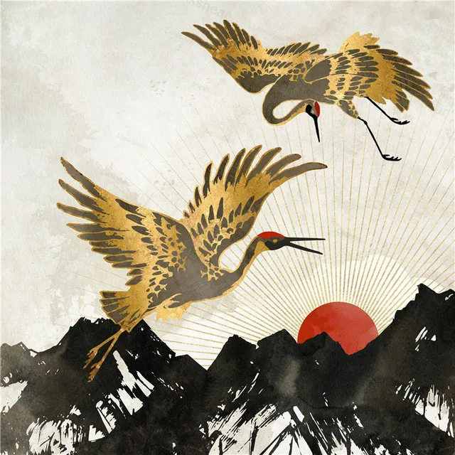 Абстрактный декоративный постер на стену в китайском старинном стиле с изображением животных, золотого Журавля, пейзажа, эстетическое украшение комнаты