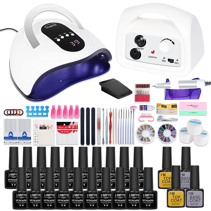 Набор для сушки ногтей, УФ-лампа, светодиодная лампа, Гель-лак для ногтей, набор из 201812 шт. и электрическая дрель для ногтей 35000 обмин, инструменты для дизайна ногтей, набор для маникюра