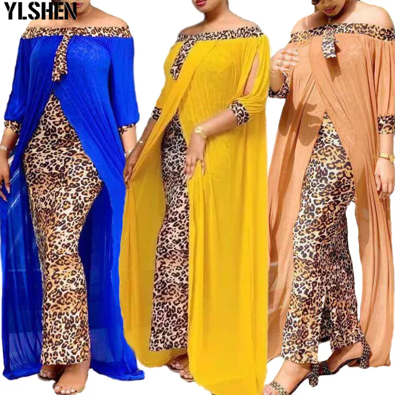 Африканское длинное платье-макси, женское леопардовое платье с выре...