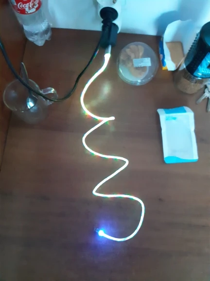 Я заказал вариант цветного типа. Красивые цвета. Только вещь, это не устойчивый цвет. Мигает все время. Он не останавливается. Это нормально, но я этого не ожидал. Я сделал фотографии, но потому что он быстро мигает, я не могу поймать то, как он выглядит лично. Видео было бы лучше. Но крутой шнур! <3