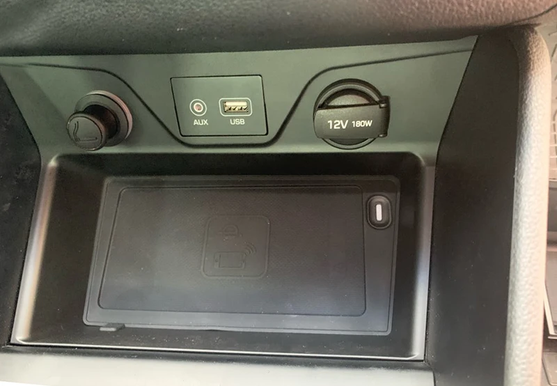 Подходит для Hyundai Tucson 2015-2019 Только для телефона с беспроводной зарядкой qi, например для iPhone 8 9 10 11 для Samsung S6 S7 S8 и т. Д. Установка: Снимите крышку отсека для хранения центральной консоли и панель переключения передач, чтобы найти разъем автомобильного прикуривателя, затем отсоедините разъем, свяжитесь с кабелем зарядного устройства для автомобильного разъема и прикуривателя
