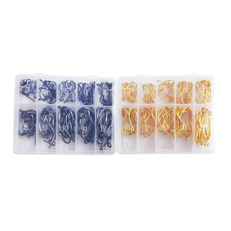 ① Включает в себя 100 рыболовных крючков разных размеров от 3 # до 12 #.