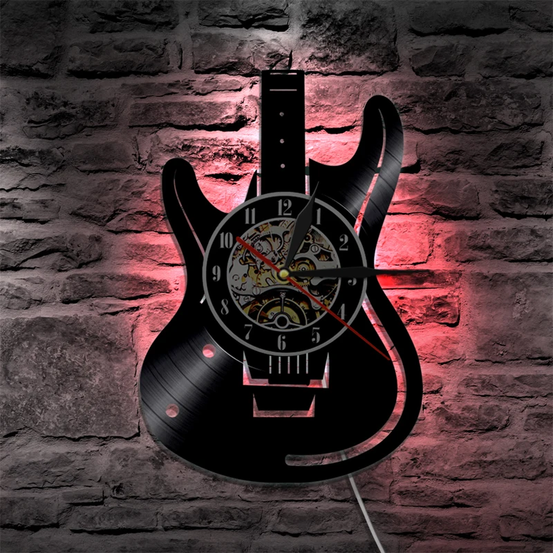 Светодиодные настенные часы с виниловой записью, музыкальные настенные часы на тему гитары, современный дизайн, домашний декор, музыкальные инструменты, подарок для музыканта