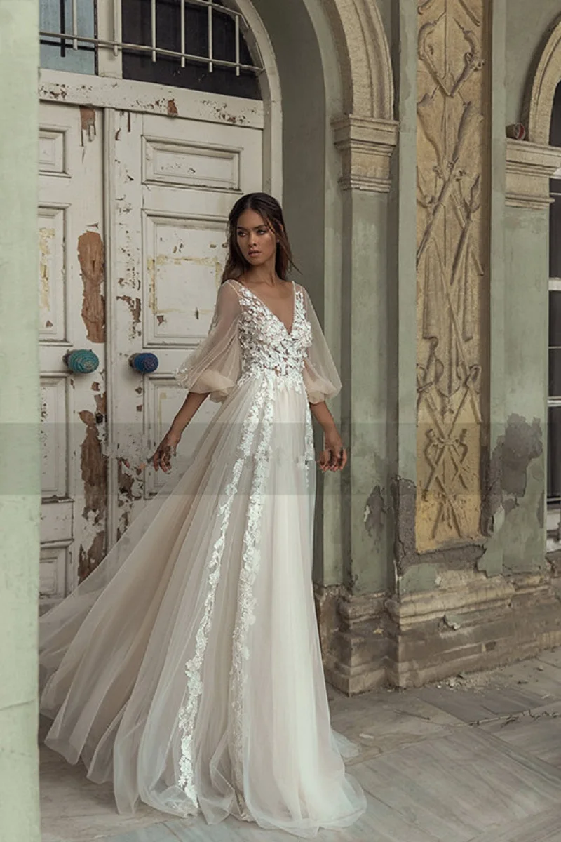 Свадебные платья с длинным рукавом и V-образным вырезом, 2022, фати...
