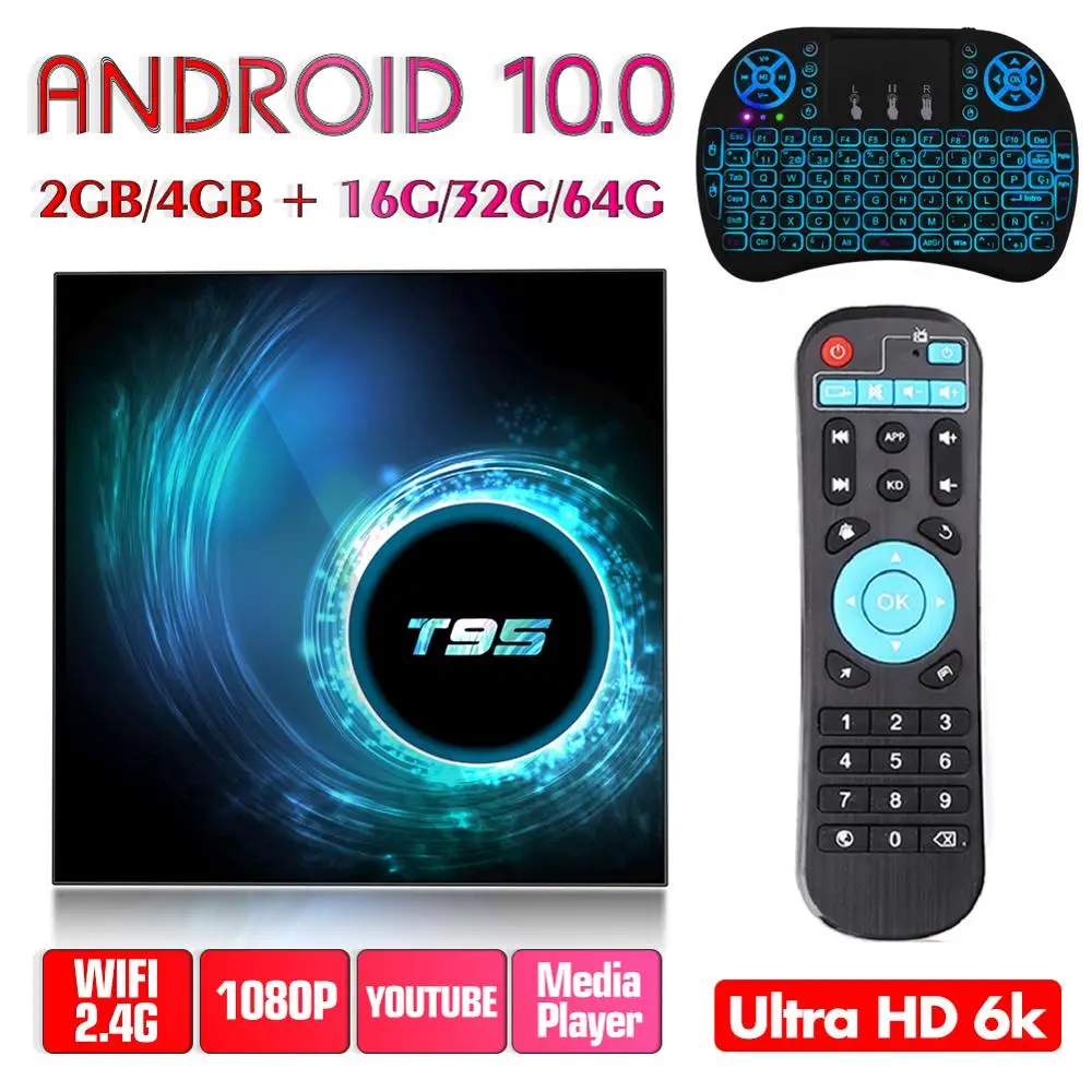 2020 последняя T95 смарт-приставка для ТВ андроид 10 4k 6k 4 ГБ, 32 ГБ, 64 ГБ 2,4 г & 5g Wi-Fi Bluetooth 5,0 Quad core компьютерной приставки к телевизору YouTube media Player