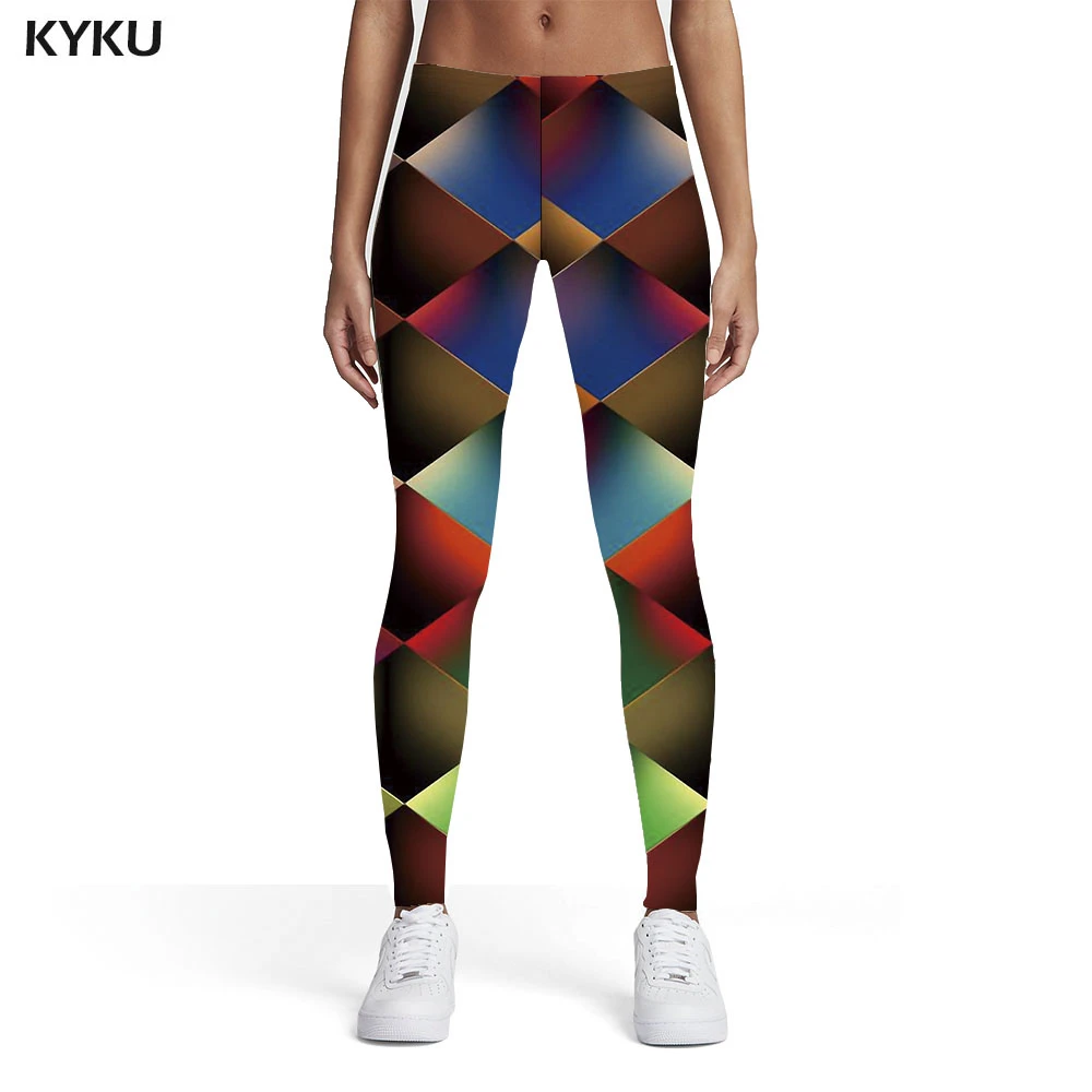 Женские леггинсы с геометрическим рисунком KYKU, разноцветные брюки...