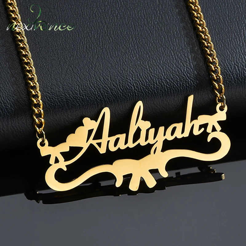 Nextvance золотое ожерелье с именем, Очаровательное ожерелье из нержавеющей стали, индивидуальный кулон с бантом, кубинская цепочка для женщин, подарок