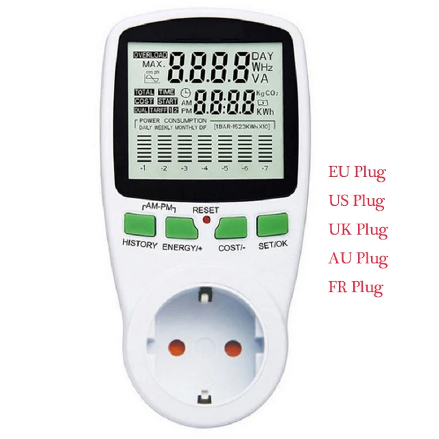 Интеллектуальный измеритель мощности переменного тока, счетчик мощности, розетка, ЕС, США, FR, Великобритания, напряжение, Частота тока, электрический монитор, ЕССШАВеликобритания, вилка