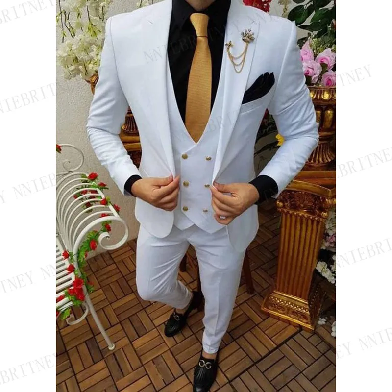 Мужской свадебный костюм, белый облегающий смокинг для жениха, выпускного вечера