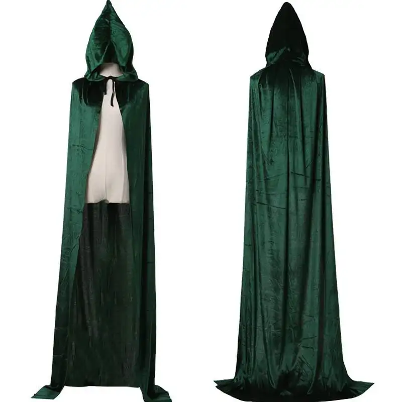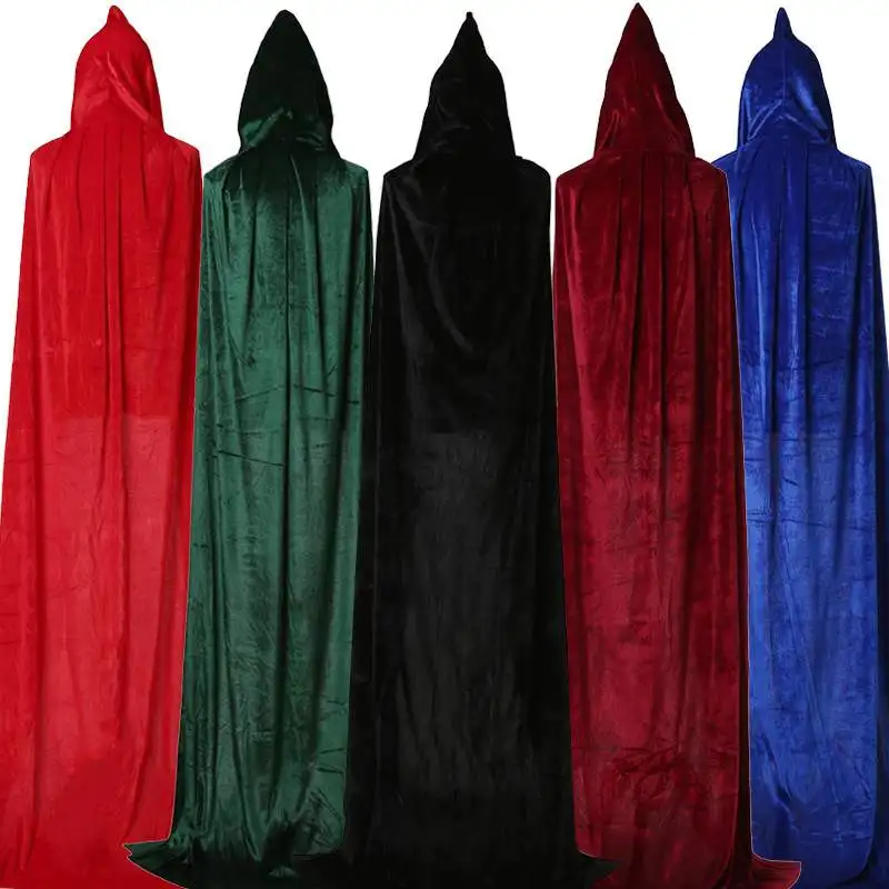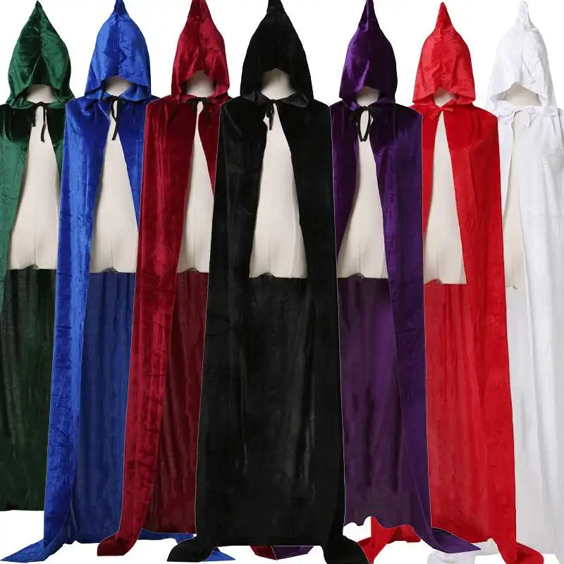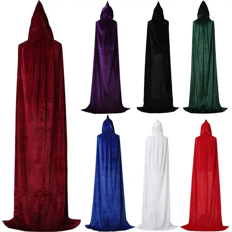 Карнавальный костюм на Хэллоуин для мужчин и женщин, длинный бархатный плащ волшебника, готический плащ с капюшоном, мантия средневековой ведьмы, вампира