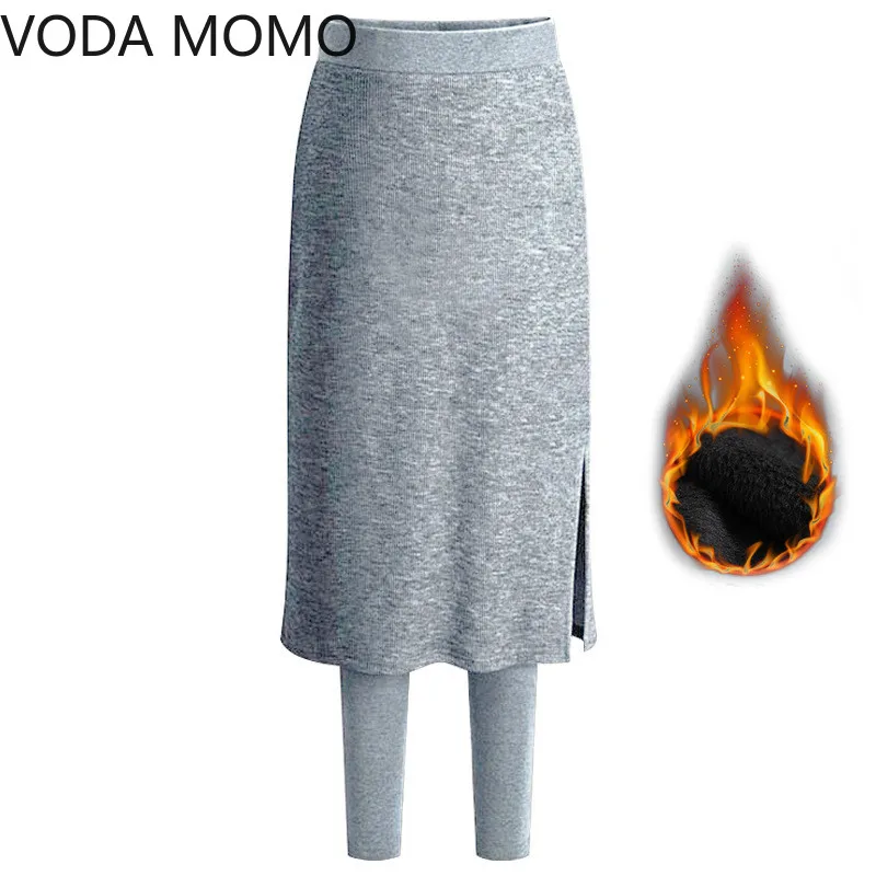 Леггинсы женские из двух частей, модные облегающие зимние теплые флисовые длинные леггинсы с флисовой юбкой, размера плюс 5xl 6xl, весна-осень