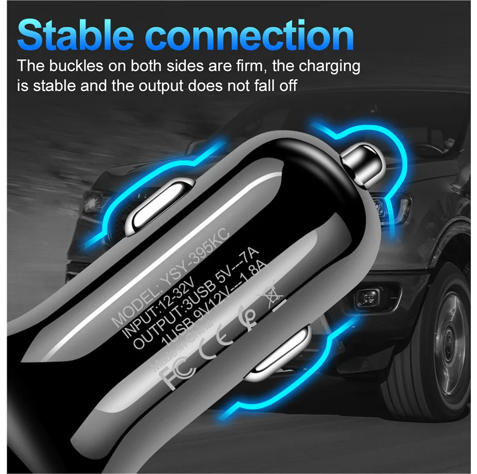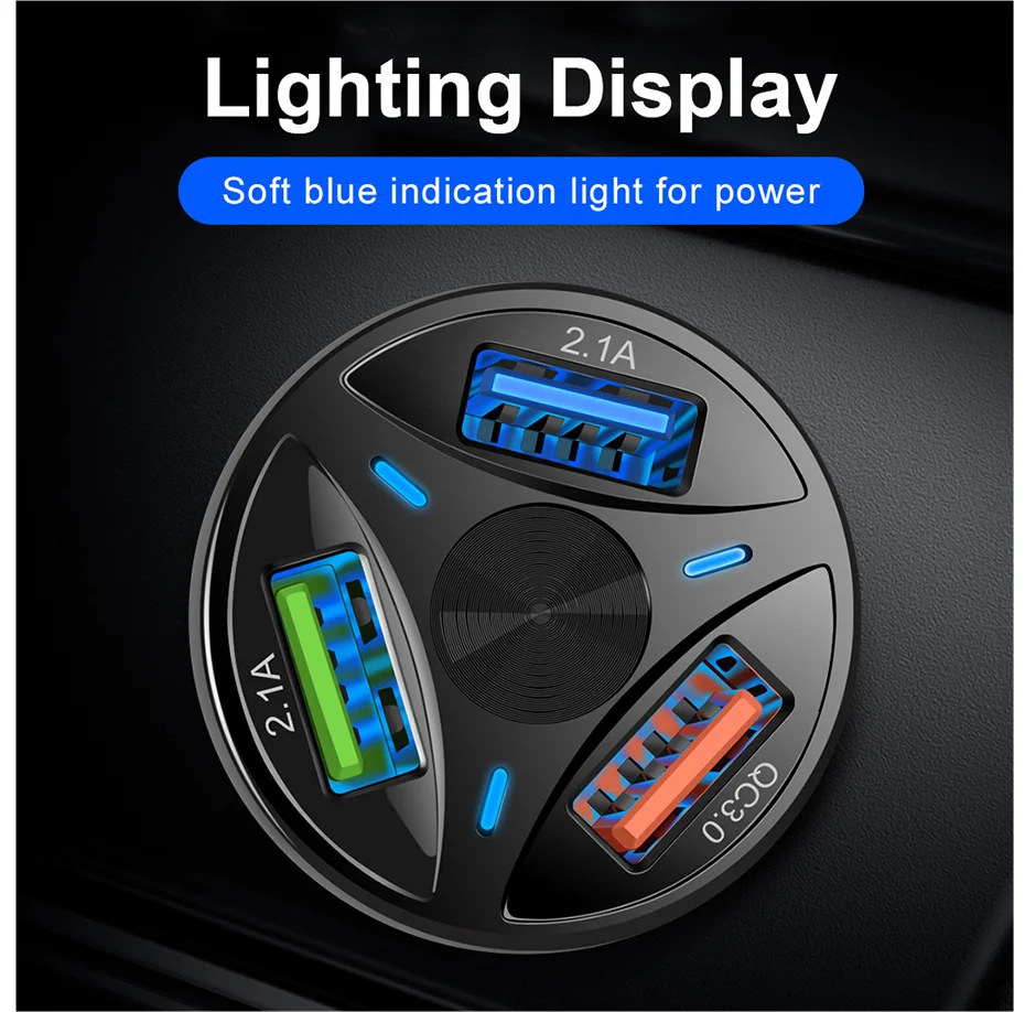 Автомобильное зарядное устройство, USB-порты для быстрой зарядки QC...
